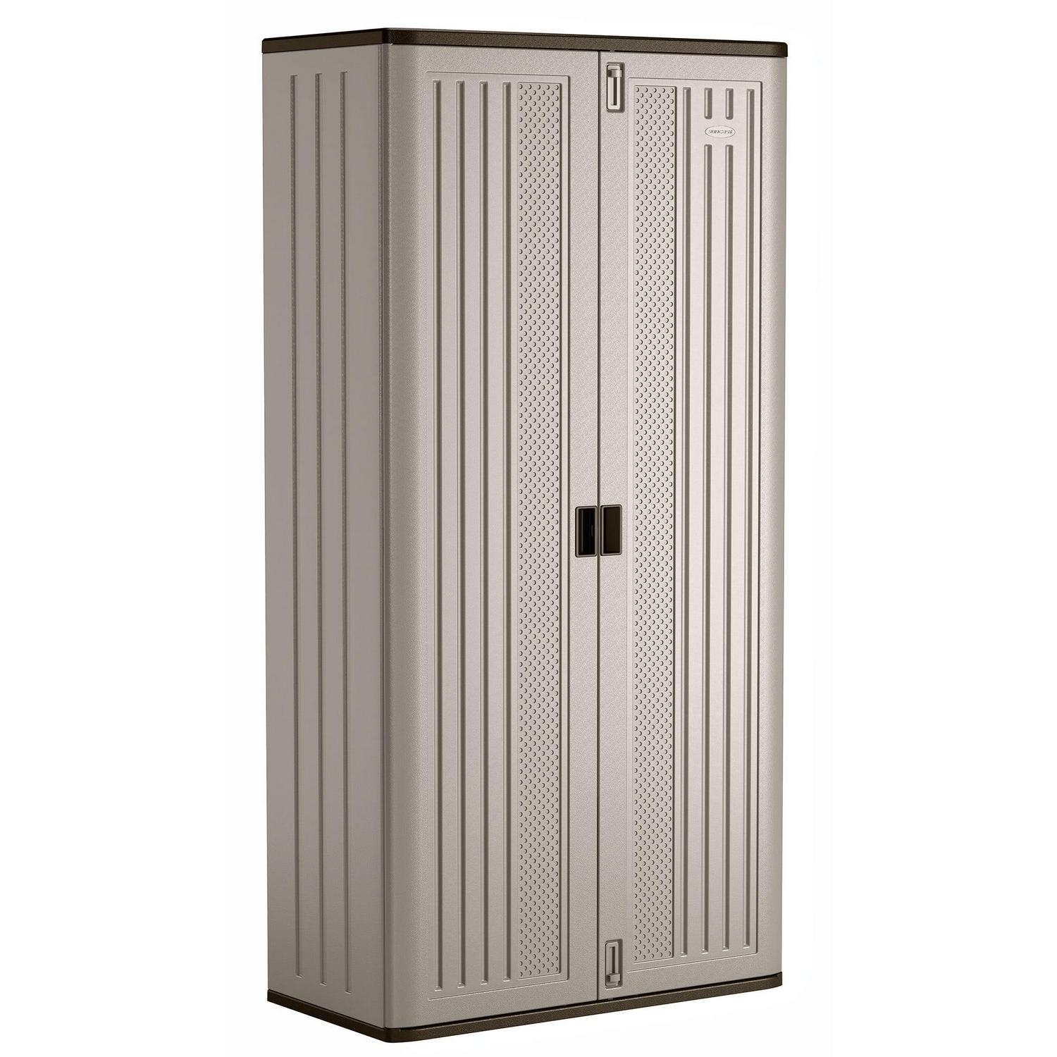 Suncast 80 Tall Resin Storage Cabinet Locker for Garage, Home, Shed, Platinum Metallic, BMC8000