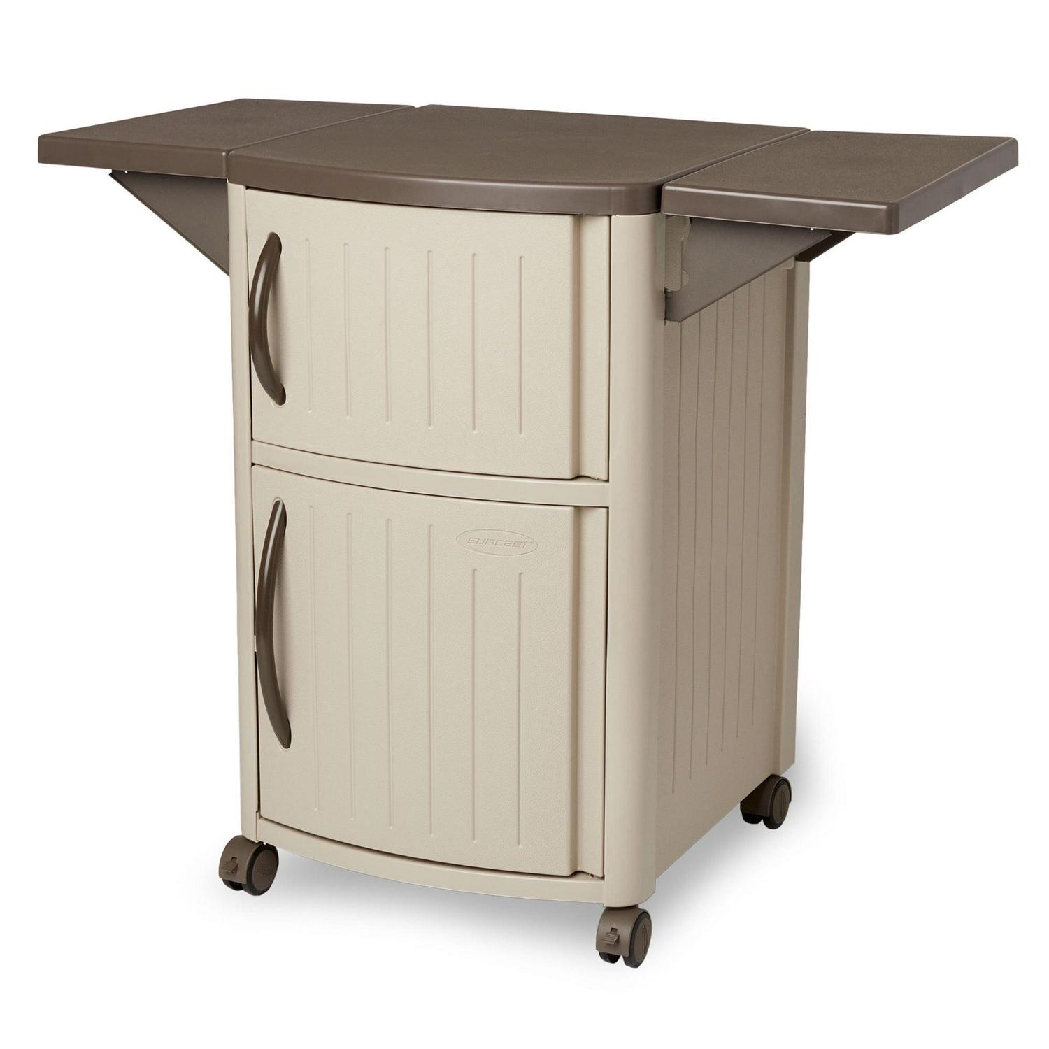 Suncast DCP2000 Portable Outdoor Prep Serving Grill Station Table and Cabinet