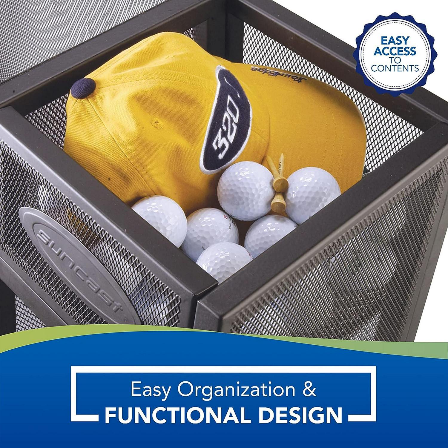 - 5-inch steel bin with 3 shelves let you store your golfing accessories