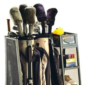 With golfing comes a lot of accessories and loose items, and with this Suncast Golf Bag Organizer, they stay neat and organized for the days that you’re not on the tee box. It’s constructed of heavy duty metal with leveling feet to adjust on uneven surfaces and can hold up to 105 pounds of golf goodies. There’s room for 2 golf bags, a bin for loose balls, tees, and small things, and shelving for rain gear, shoes, and towels. Whether you play like a pro or not, store like a pro with this Suncast Metal Golf Bag Organizer.