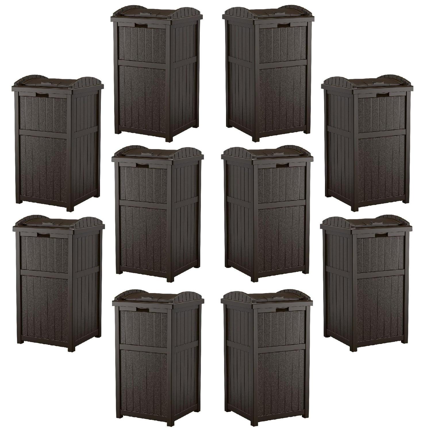 Suncast Trash Hideaway Outdoor Garbage Waste Can Bin, Java 10 Pack, 33 Gallon