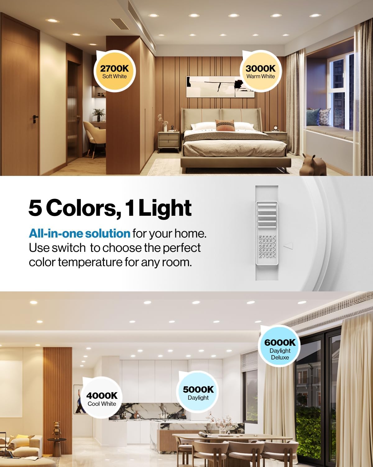 – Top Rated 6-Inch Slim LED Downlight with 1700 lumen High Brightness – ✅ ULTRA BRIGHT & DIMMABLE – Make your space look brighter with our 1700 lumen LED downlights and create the perfect ambiance using our seamless dimmable capabilities ( ) to match your desired mood. – ✅ EASY TO INSTALL – Follow our installation guide for a quick and easy setup. Suitable for damp locations. Directly install retrofit fixture to the ceiling in an existing recessed can for bright light in your kitchen, family room, bedroom, bathroom, and common areas in your home or office. – ✅ 5-IN-1 CCT – Elevate the ambiance of any room with our LED Baffle-Trim Downlight’s customizable color temperature feature. Simply use the slider switch to select from 5 options (2700K, 3000K, 4000K, 5000K, 6000K) and find the perfect fit for your space. – ✅ SUNCO BENEFITS – 7-Year ! Sunco is proudly based in the USA, offering quality products at affordable prices backed by industry-leading warranties and knowledgeable support specialists. NOT FOR SALE IN CALIFORNIA.