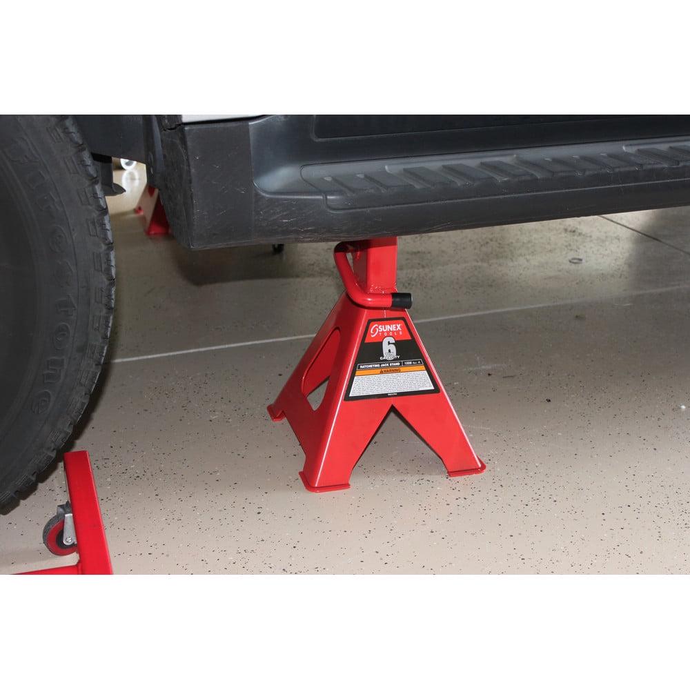 Sunex Tool’s Jack Stand’s are the ideal choice for vehicle support after lifting, and feature ductile iron support columns with ratchet teeth to provide multiple height positions. Each jack stand features a wide, four point base with pads to ensure stability during use, as well as a self-locking handle and pawl to secure the column in place.