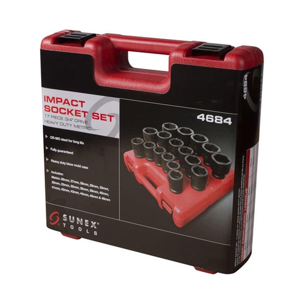 Sunex 4684 17-Piece 3/4 in. Drive Metric Heavy-Duty Impact Socket Set
