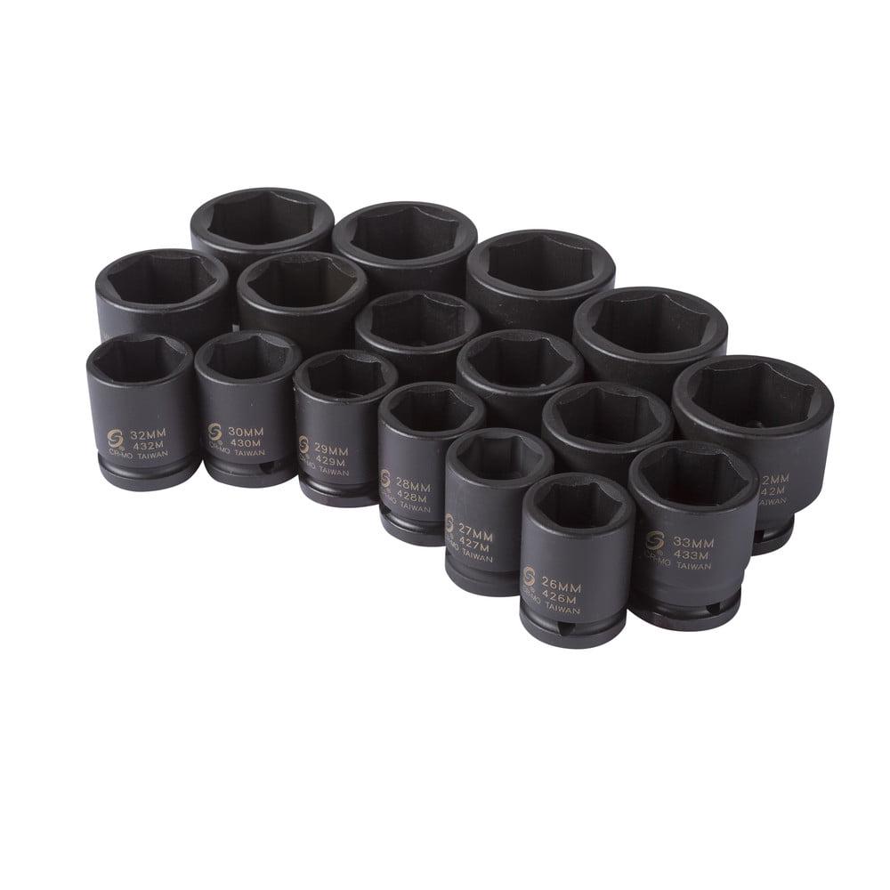 - Sunex 17-piece metric heavy-duty impact socket set includes sockets ranging from 26 to 46 mm