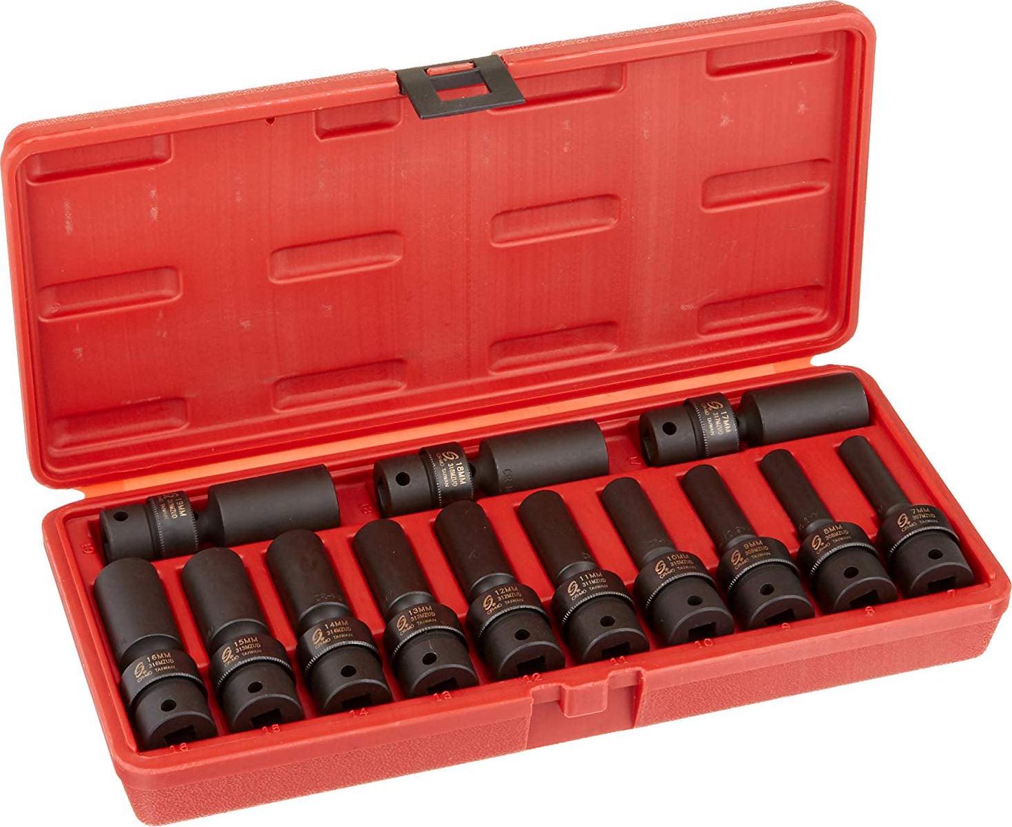 Sunex Tools 3691 – 13 Piece 3/8 Drive 12 Point Metric Universal Impact Socket Set