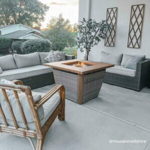 – Fashionable Appearance & Design: Featuring a unique design, this fire pit has an all-weather wicker table base, the stylish and high-class aesthetics make this fire table an attractive addition to the garden, patio, or balcony.