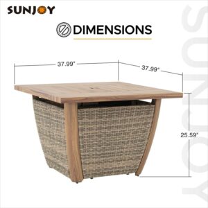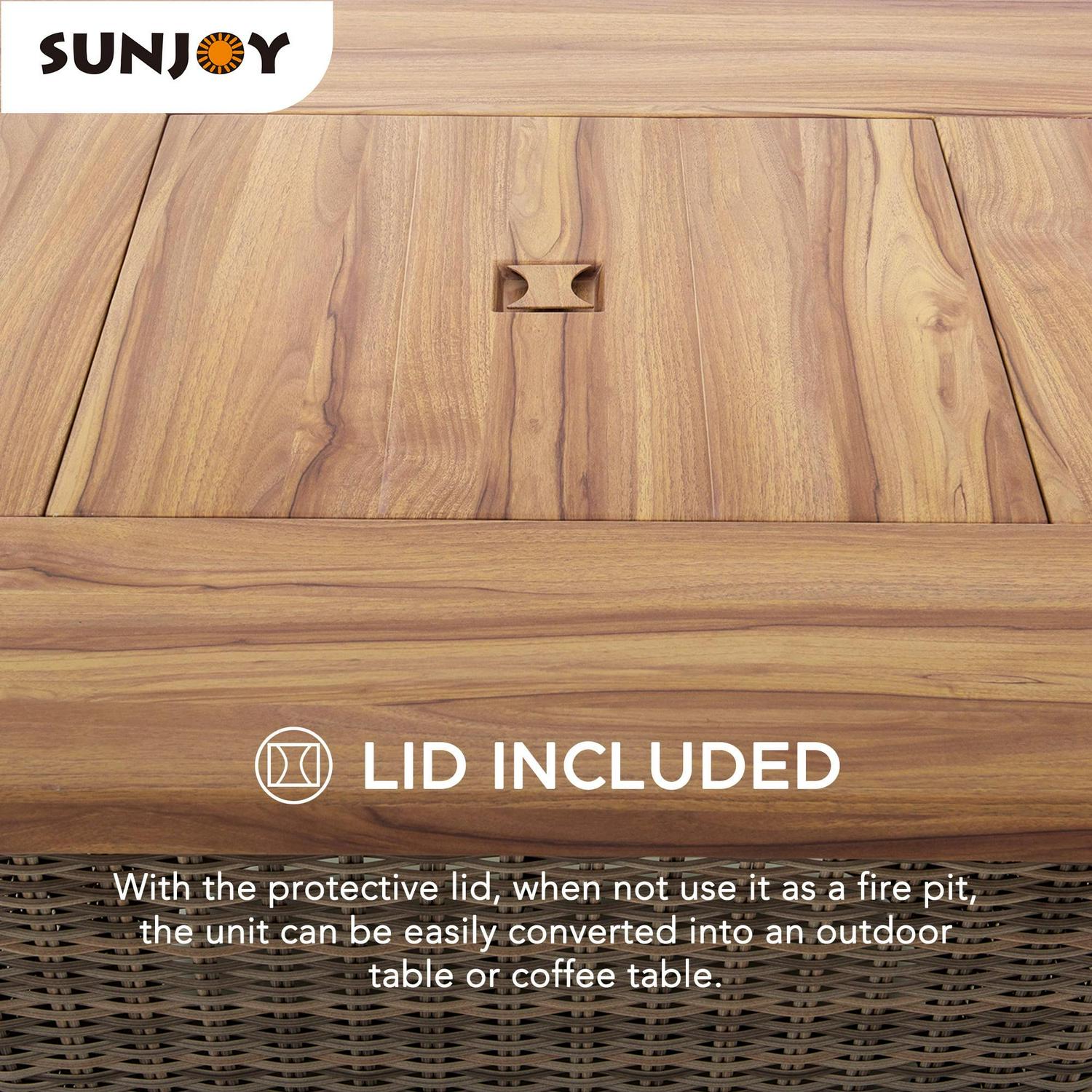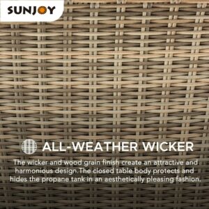 Sunjoy 38 in. Smokeless Fire Pit Outdoor Wicker Propane Gas Fire Pit Table Hidden Propane Tank Fire Pits with Lid and Lava Rocks