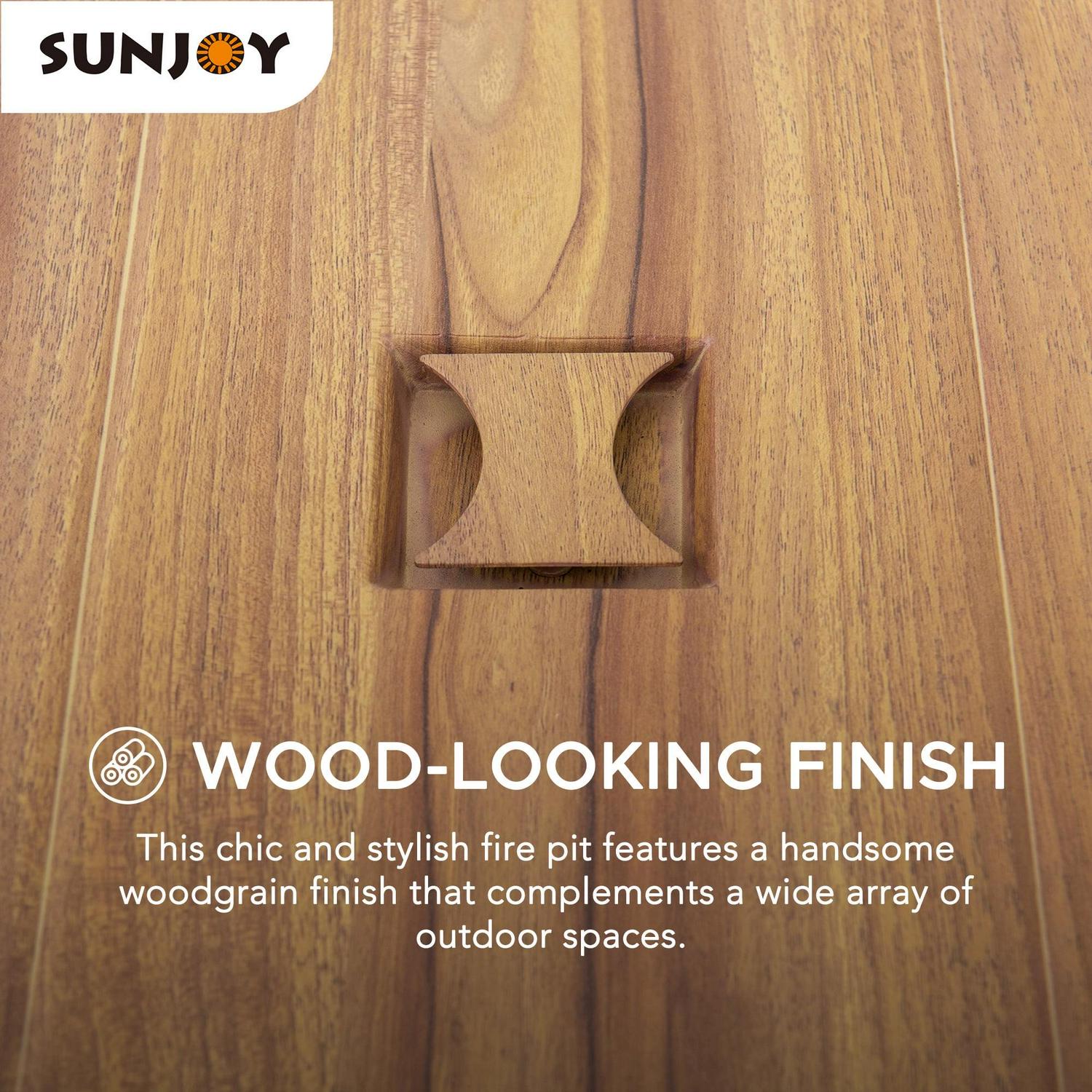– Durable & High-Quality Material: Constructed with a thick powder-coated steel frame and a natural-looking wood grain heat-transfer steel tabletop, this fire pit will complement a variety of outdoor spaces.