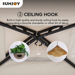 Sunjoy 5 x 8 ft Black Steel Frame Double Tiered Canopy Grill Gazebo for Outdoor, Patio, Garden, and Backyard Activities,Gray and Black