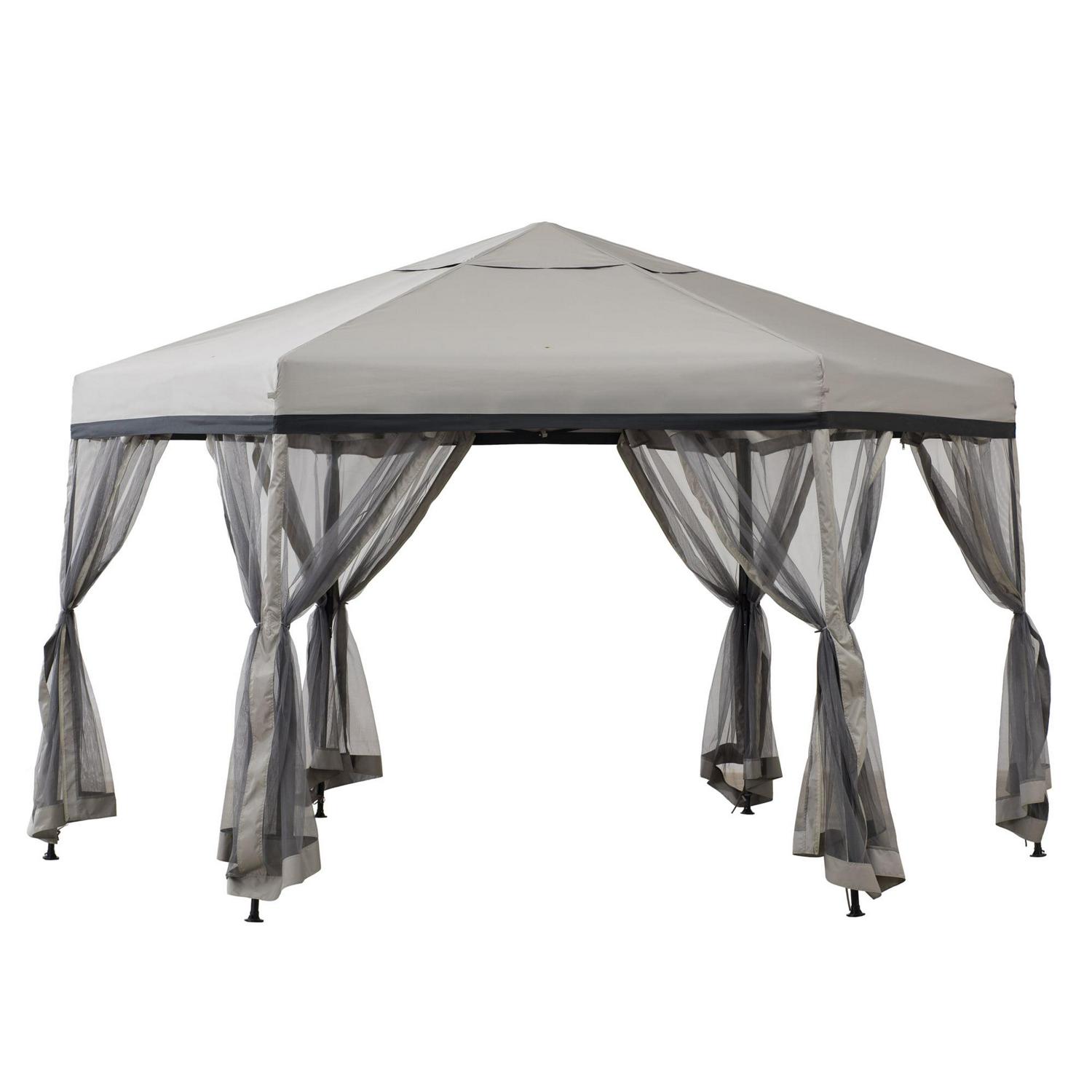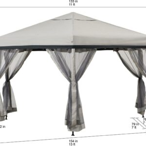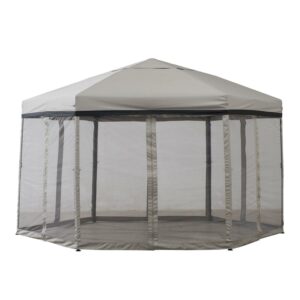 Sunjoy Millbrook 11 ft. x 11 ft. Gray and Black 2-tone Pop Up Portable Hexagon Steel Gazebo with Mosquito Netting