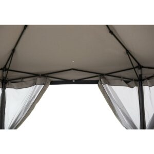Instantly create an outdoor gathering spot for family and friends away from the glaring sun and pesky insects. This 11 ft. x 11 ft. soft-top, pop-up gazebo by the world s leading ready-to-assemble outdoor structure maker, Sunjoy, creates a perfect affordable and portable outdoor setting. Keep cool in the shade supported by the durable powder-coated steel frame. The fabric top is designed to withstand the outdoor elements while the transparent netting keep mosquitoes and other bugs away. With straight-forward, easy-to-follow assembly instructions you ll be relaxing in your favorite new outdoor living space in no time.