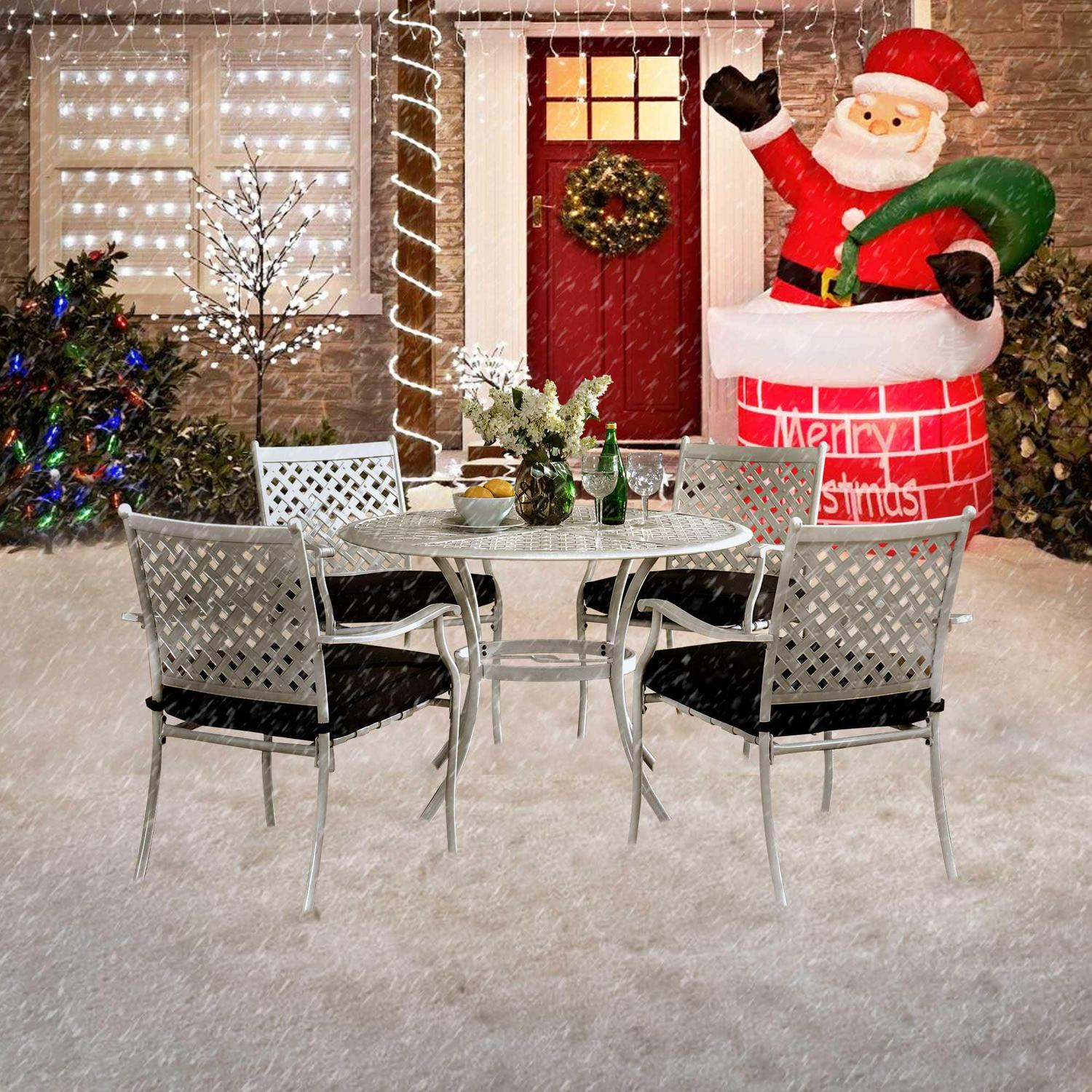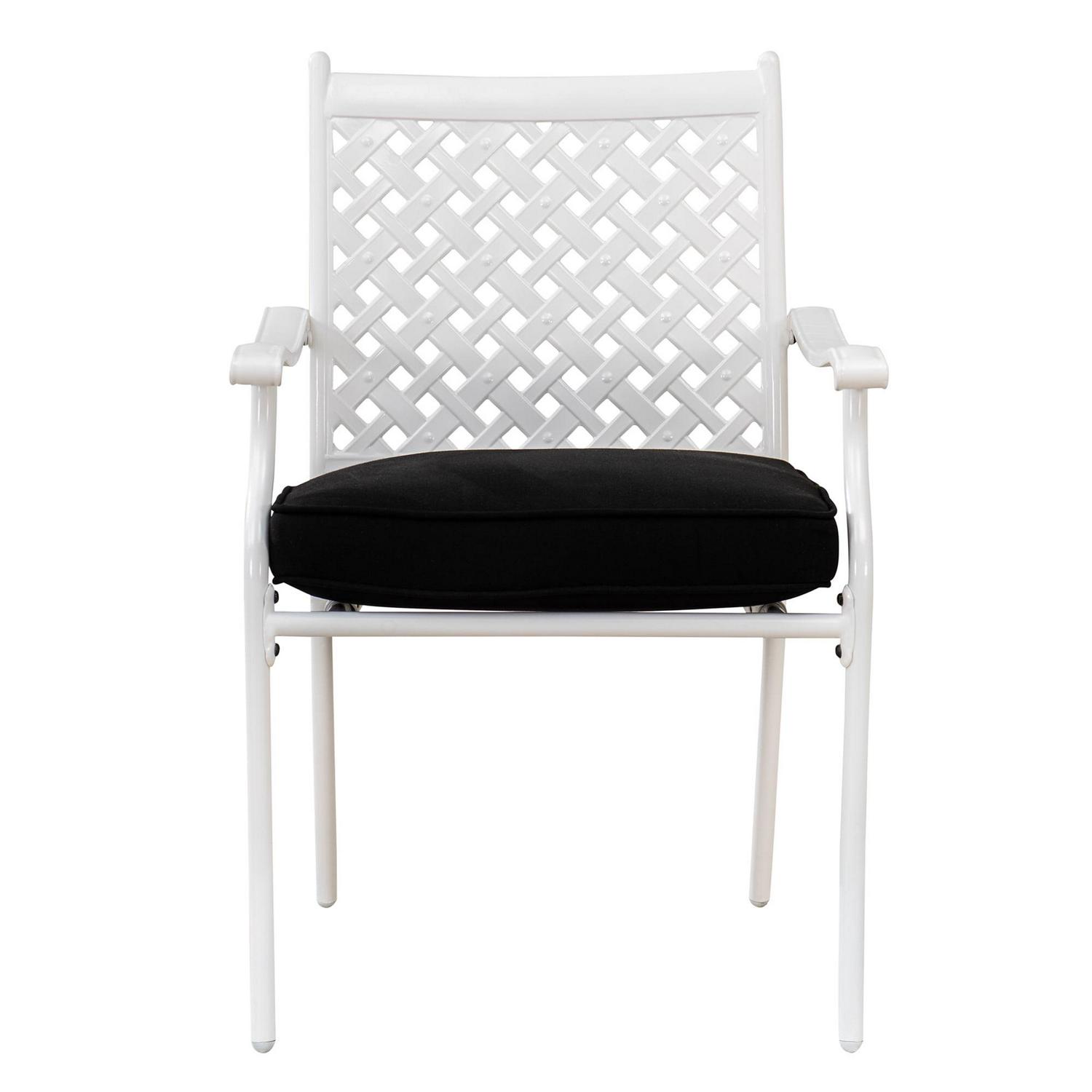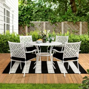 Sunjoy Minnesota Collection 5-piece White Aluminum Lattice Dining Set with Black Seat Cushions
