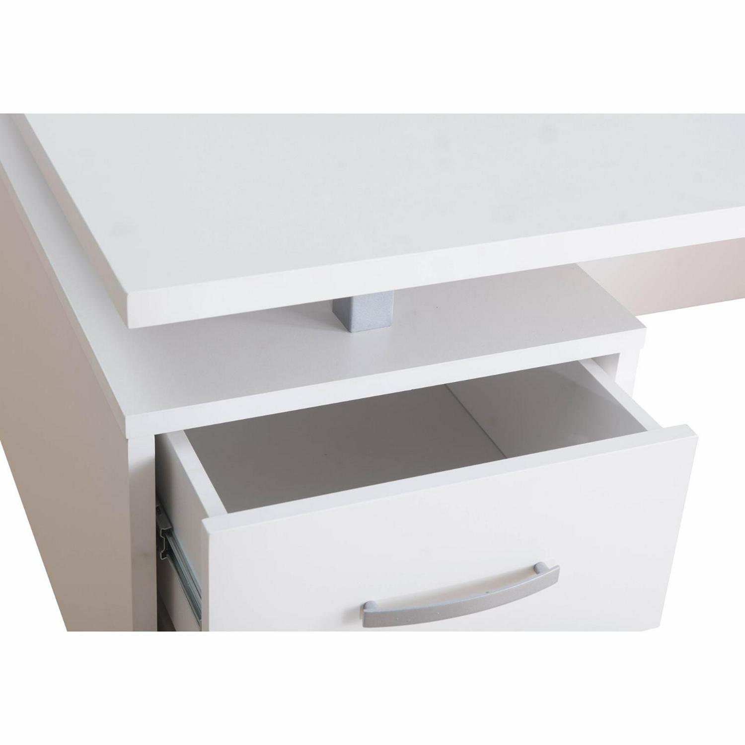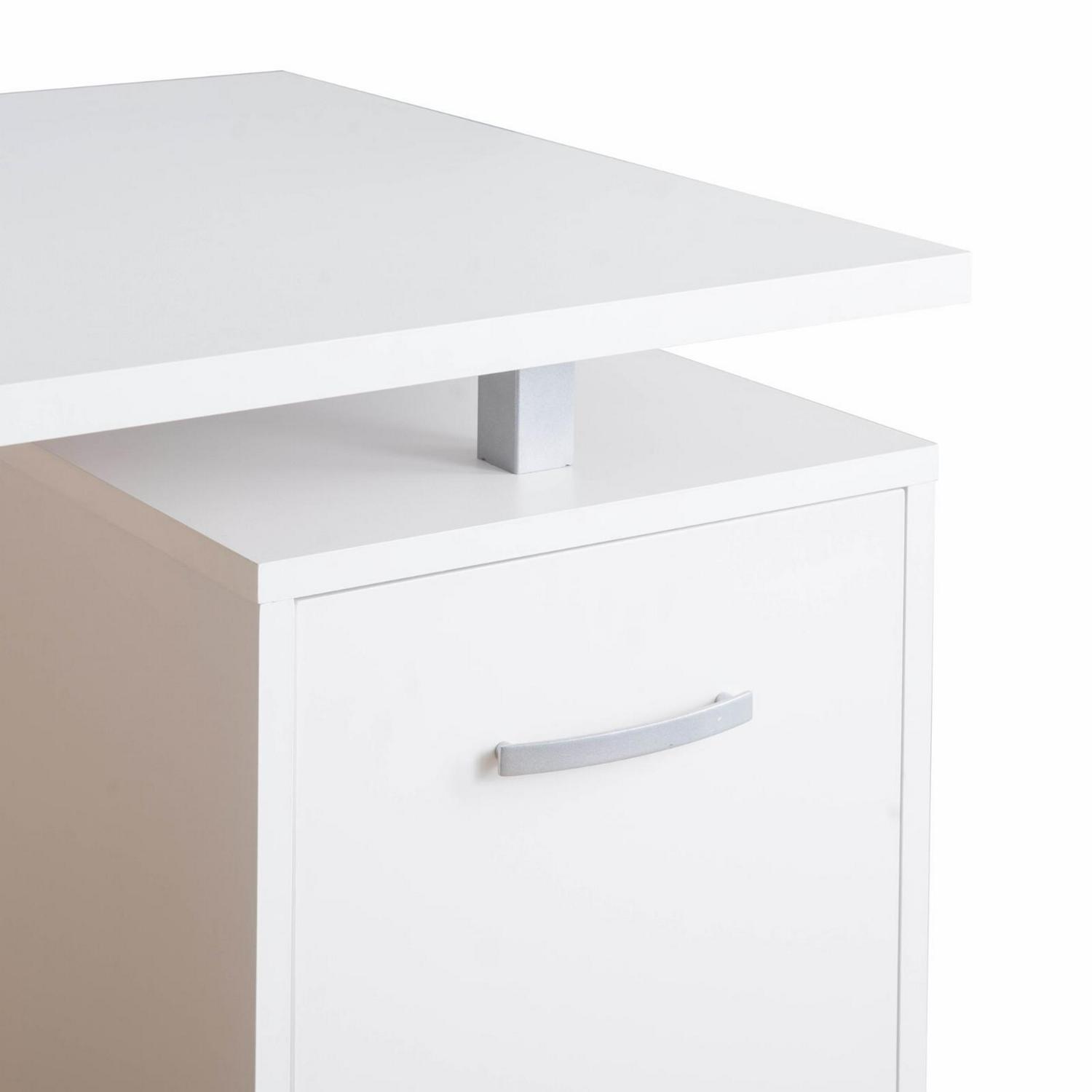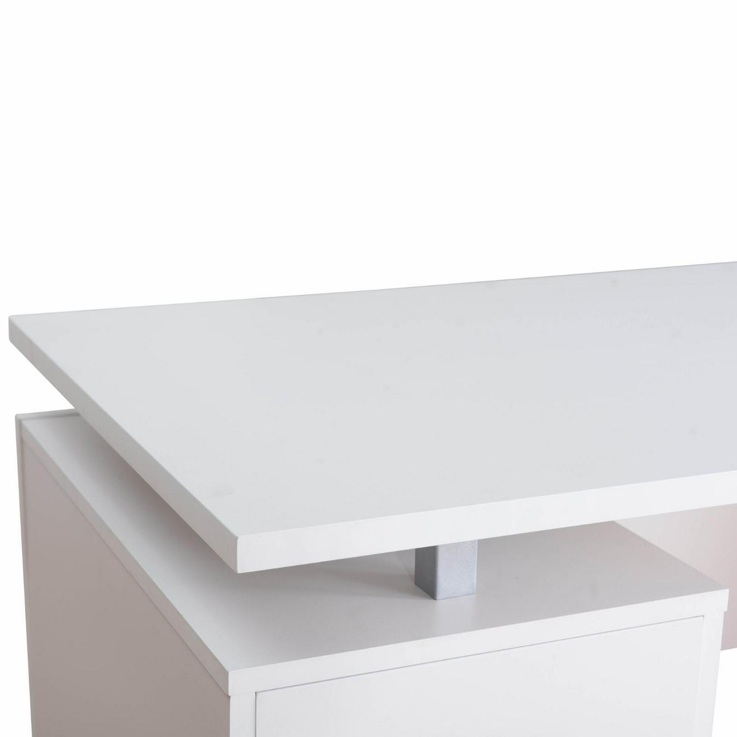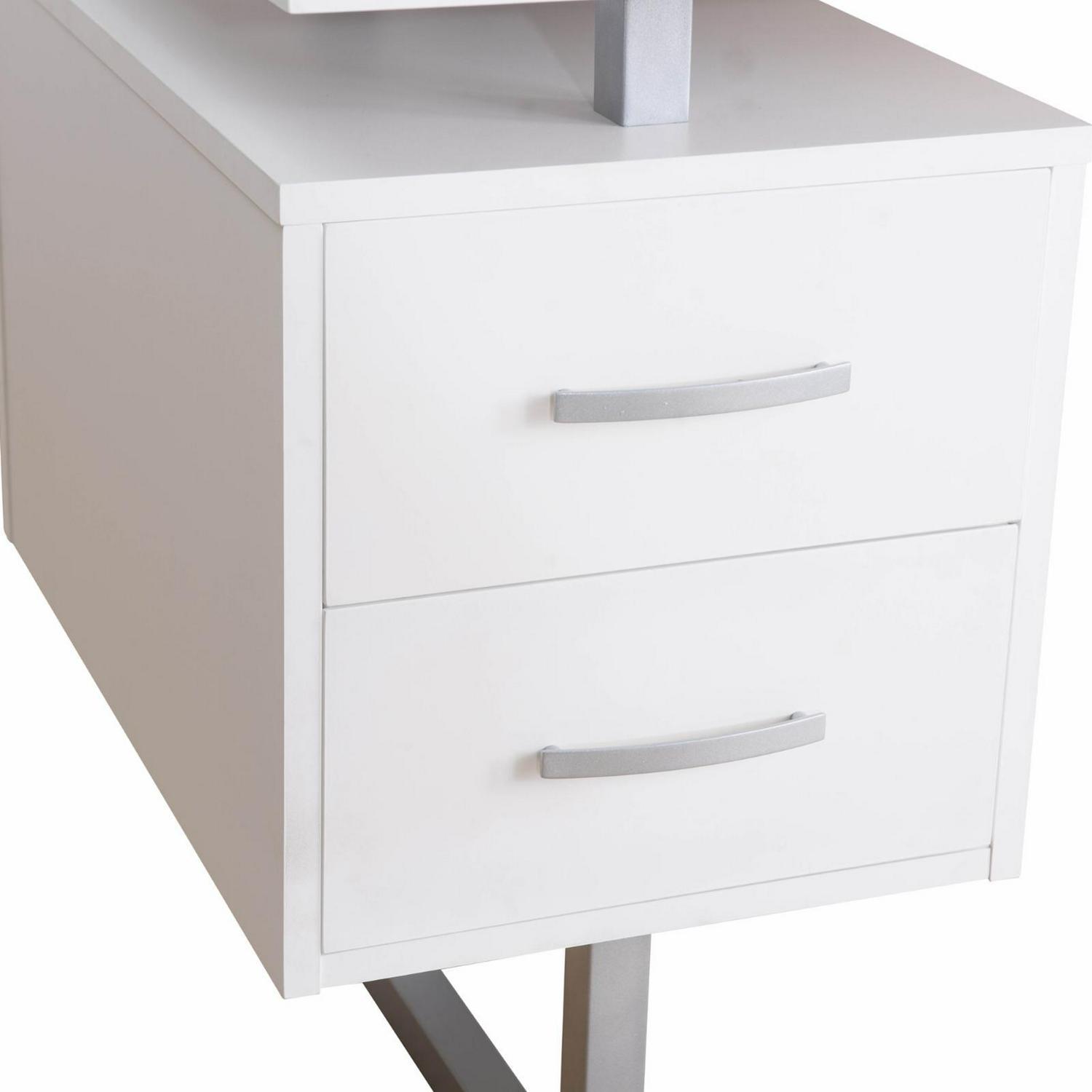 Sunjoy Studio Space 60 White Study Writing Home Office Desk Wall Mounted Laptop Computer Desk with Floating Desk Top and Storage Drawers and Metal Stands