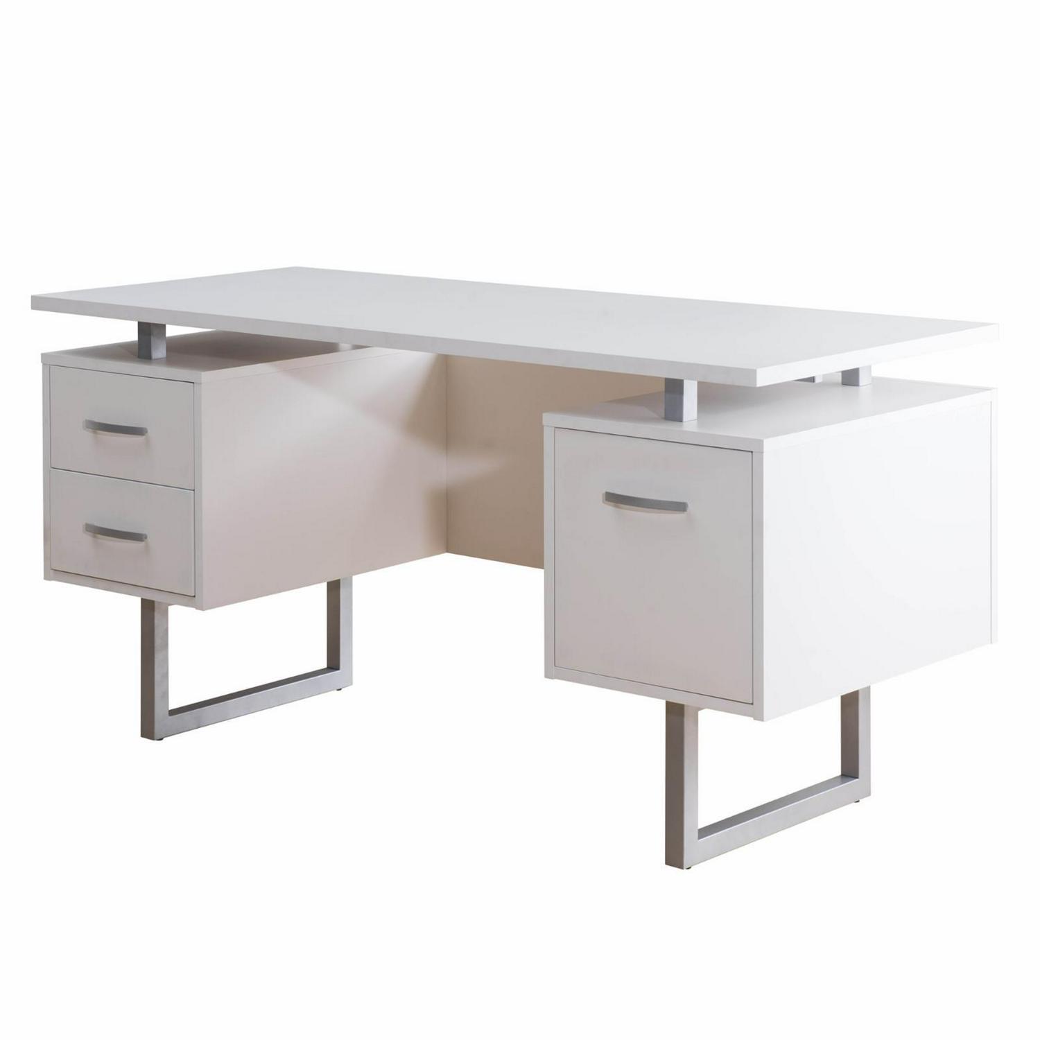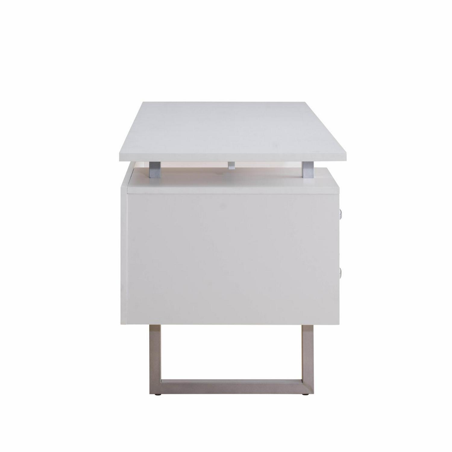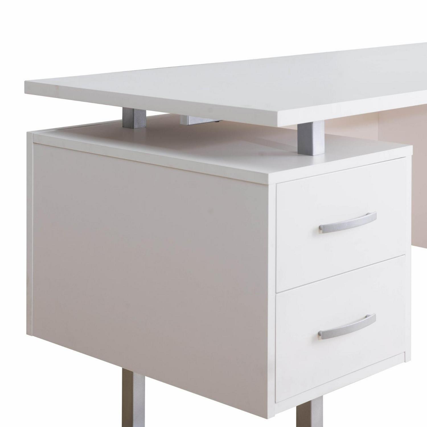 Modernize your office or home work space making it truly stand out with Deja’s sleek and contemporary design. The Deja desk’s luminous, bright white finish complements its clean lines and striking design. This striking desk is an update to a mid-century modern classic. Twin, floating white quarter pedestals sit atop study gray steel leg supports. Floating atop the twin pedestals is an expansive and substantial desk top. The bright white finish adds to its panache. One side houses a full-extension file drawer while the other hosts 2 storage drawers to help keep your desk top clean and clutter free.