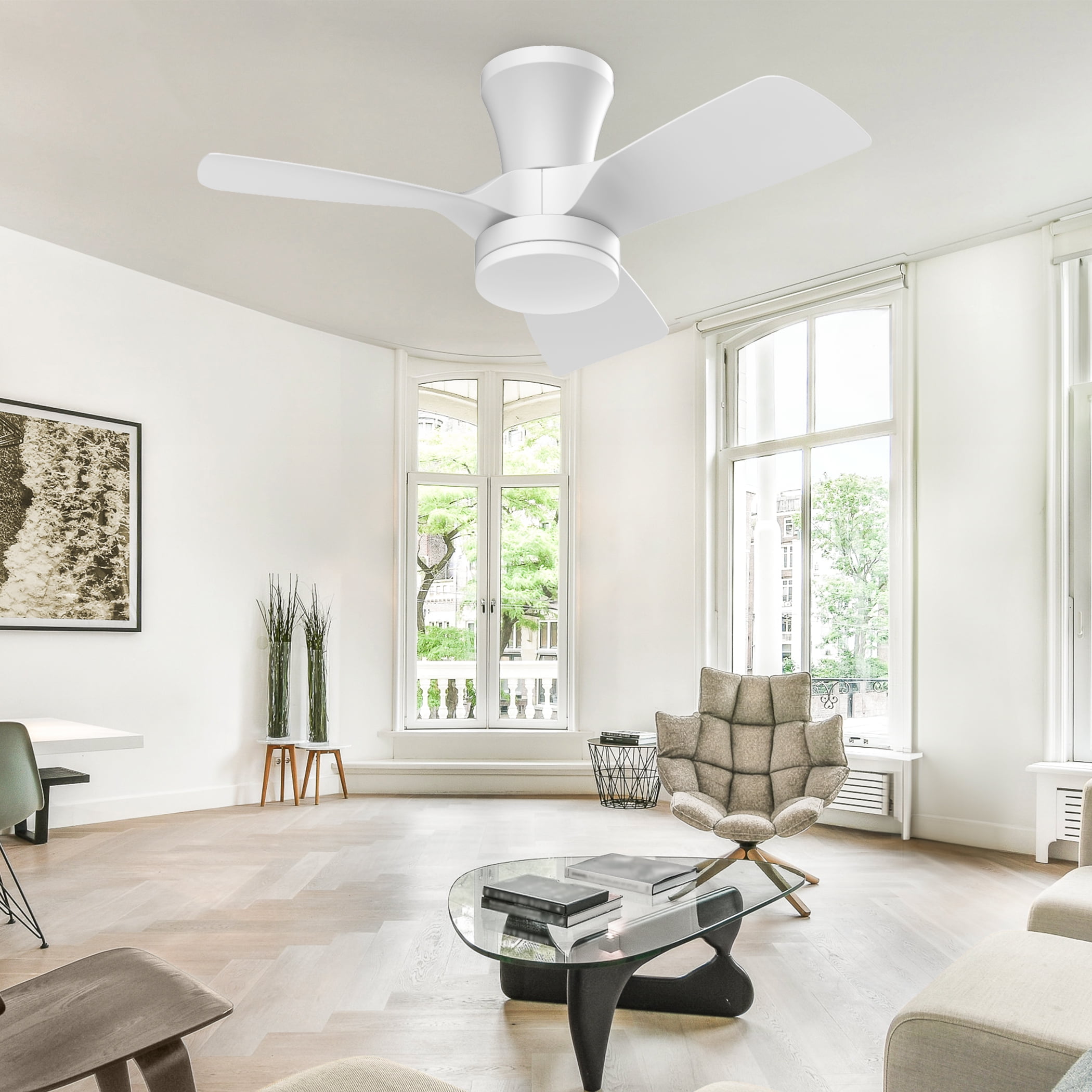SUNMORY Ceiling Fans with Lights and Remote, 30 inch Low Profile Ceiling Fan with Light, Modern Flush Mount Ceiling Fan for Bedroom/Kitchen/Dining Room/Patio, 6 Wind Speeds, Dimmable, White