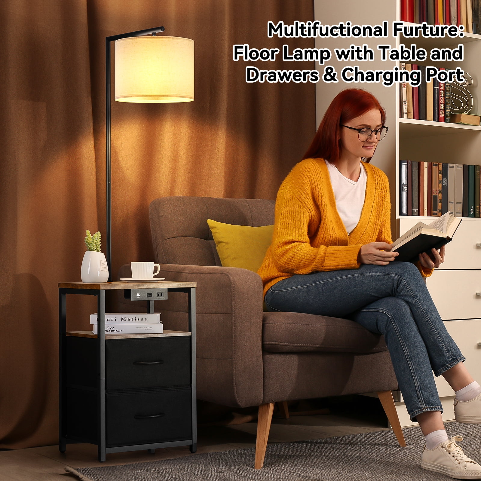 Home / Home, Garden &Tools / SUNMORY Floor Lamp with Table & 2 Drawers, Lamp with USB Port and Outlet, Nightstand with 3 Color Temperature Led Bulb Included, Floor Lamps for Living Room, Bedroom and Home Office, Walnut