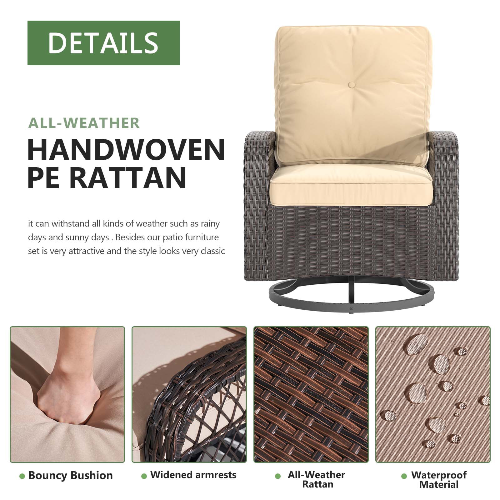 Sunmthink Patio Furniture Set, featuring the Outdoor Swivel Glider Rocker and Wicker Patio Bistro Set. This furniture set offers long-lasting performance and easy maintenance, making it a reliable choice.