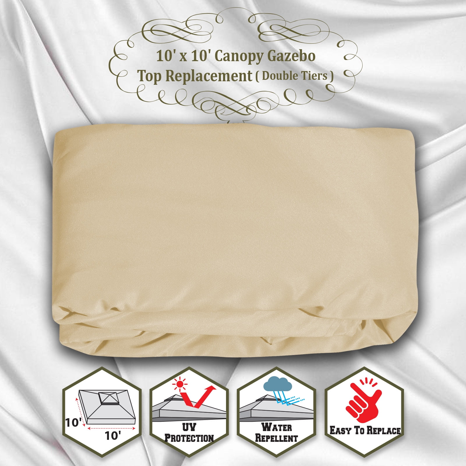 SUNNY 10×10 FT Gazebo Replacement Canopy Top Double Tier Canopy Top Cover (Beige)