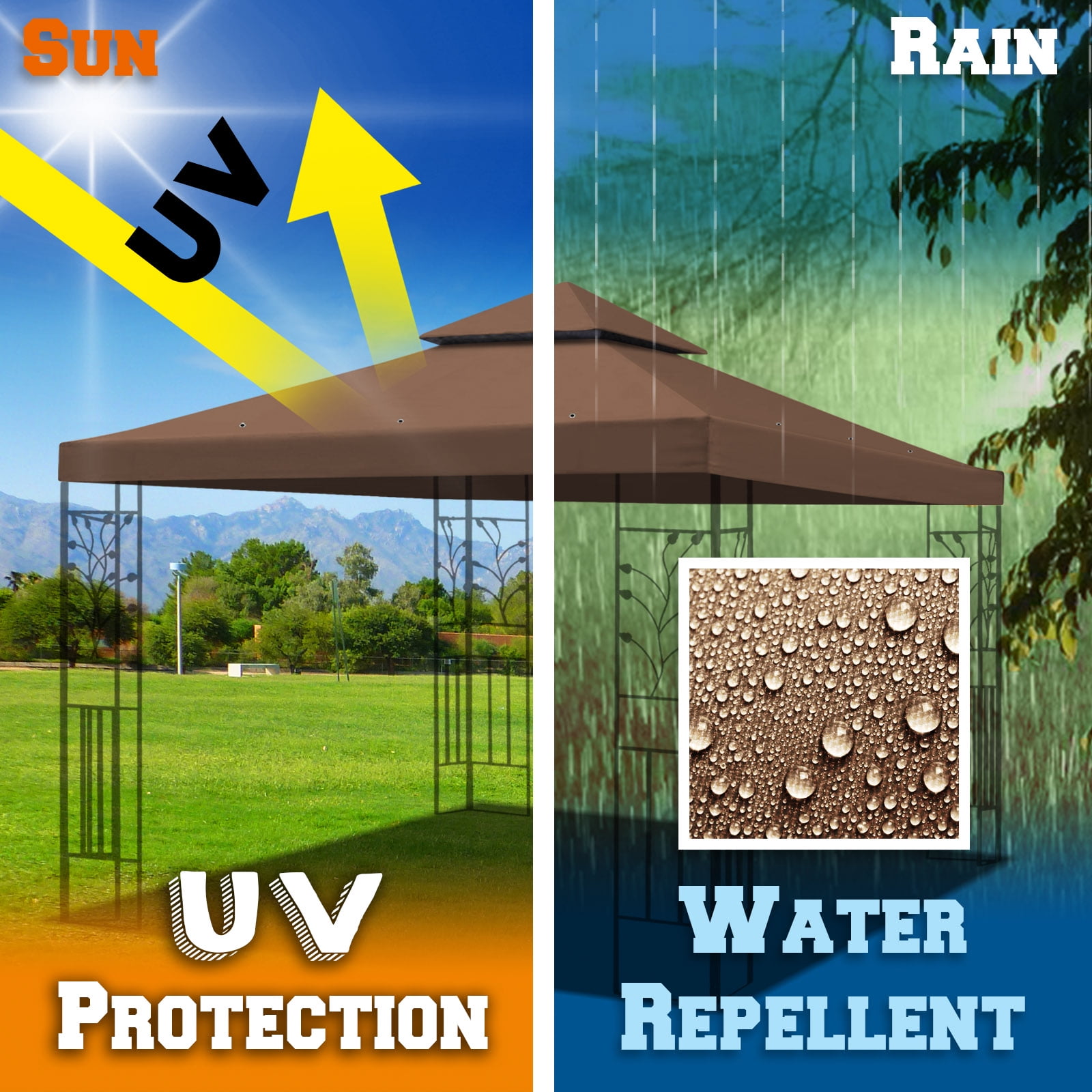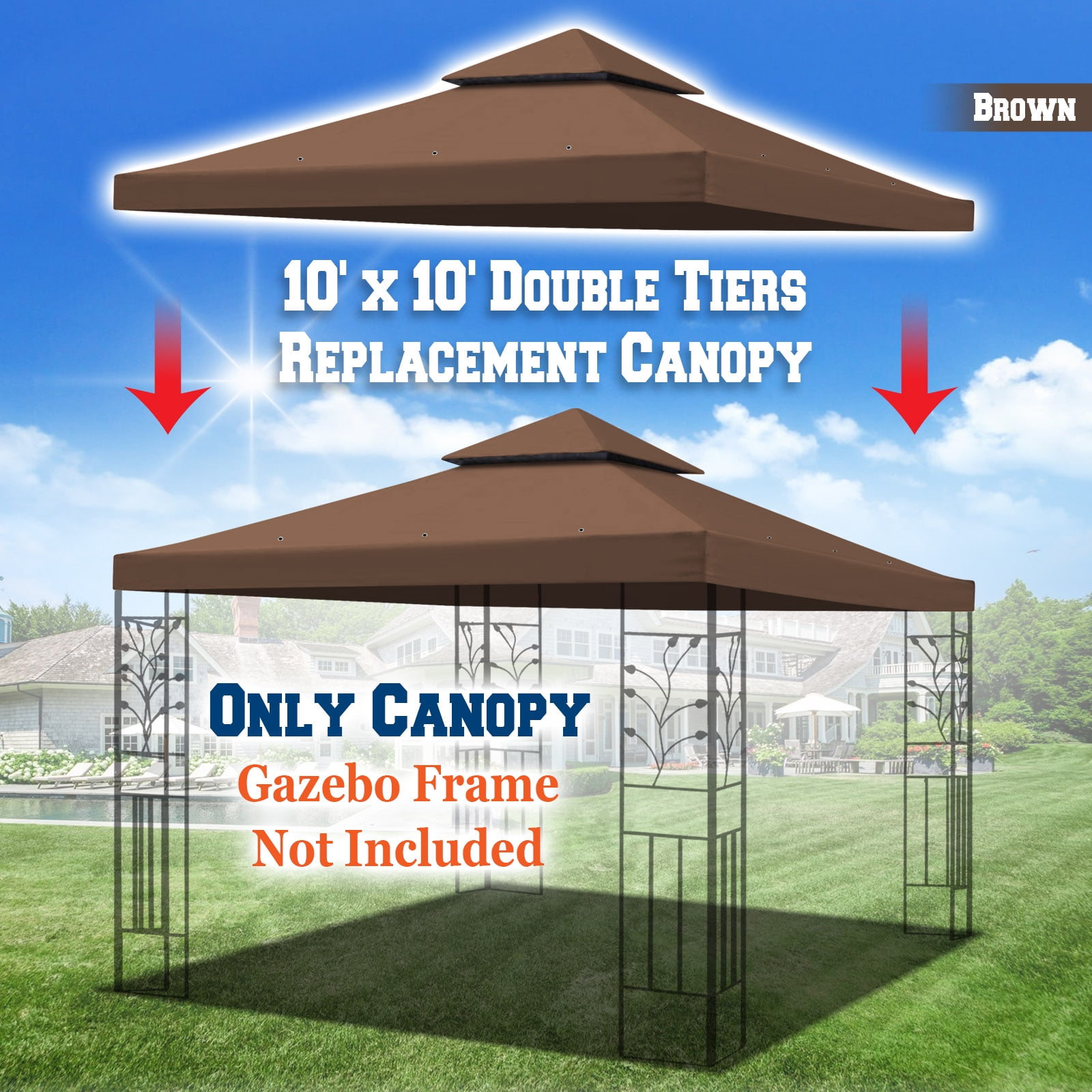 SUNNY 10×10 FT Gazebo Replacement Canopy Top Double Tier Canopy Top Cover (Brown)