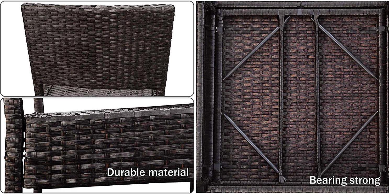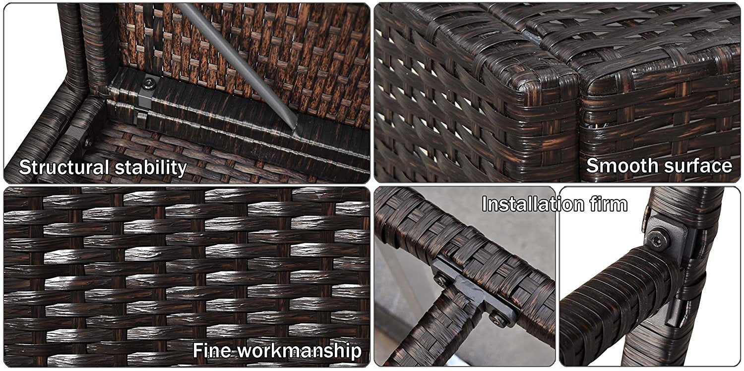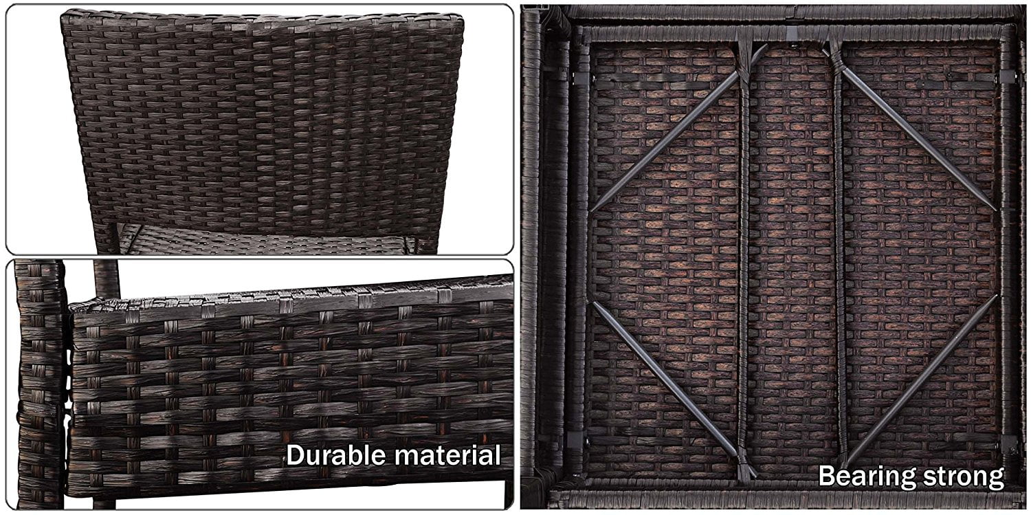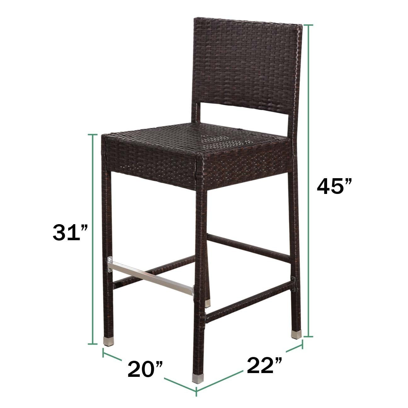 Size of the chair:22″ x 20″ x45″; Bar stool seat height : 31″; Seat dimensions: 22″(L) x 20″(W); Bar stool weight : 12 lbs Weight Limit: 330lbs ; Wicker color: Dark Coffee; Package: 2pc All aluminum frame construction; Wicker: All-weather hand woven resin PE wicker Assembly Details: parts assembly required Care and Cleaning: Wipe Clean with a Damp Cloth; Protective Qualities: Weather-resistant