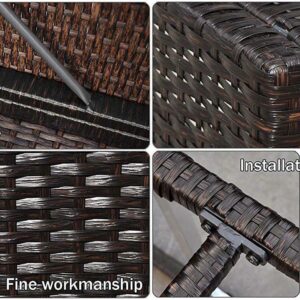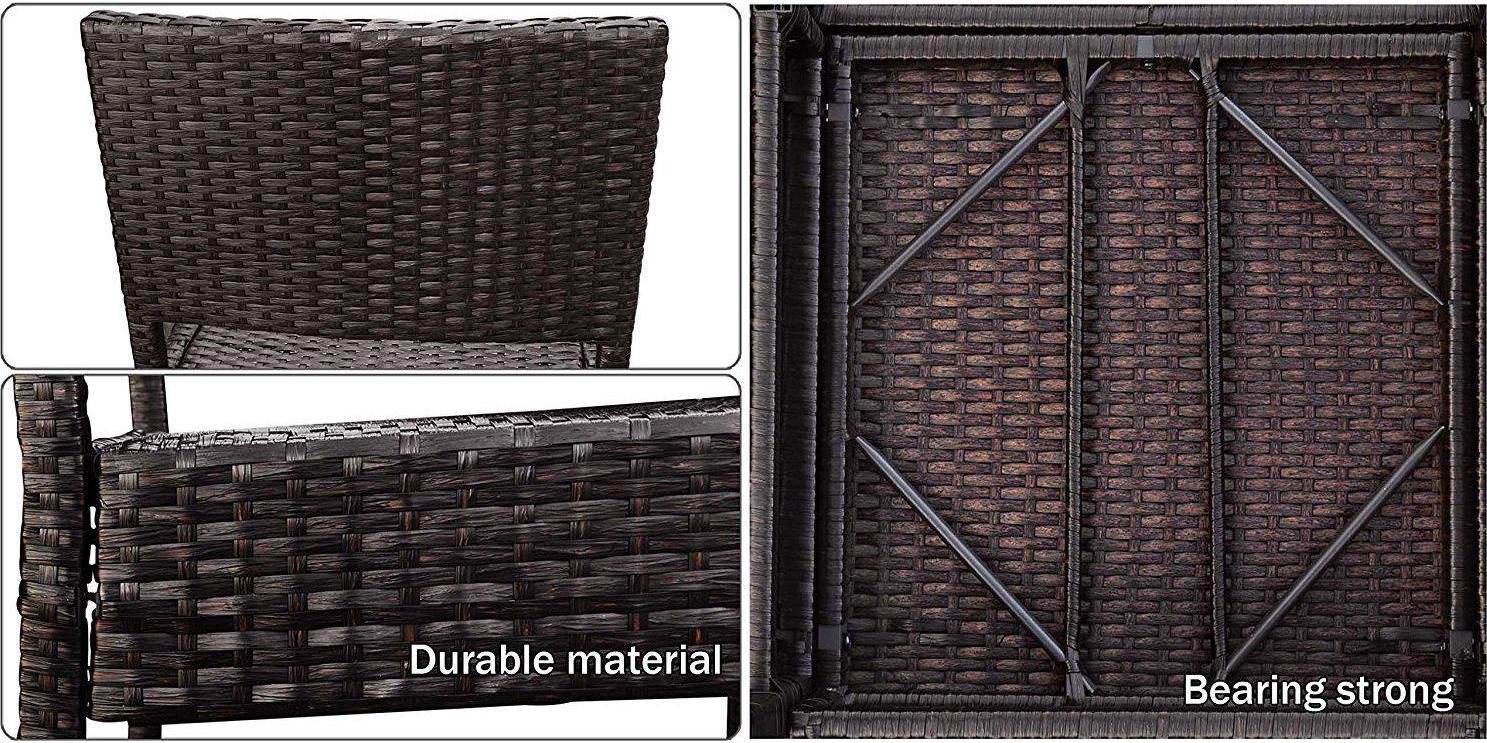 Size of the chair:22″ x 20″ x45″; Bar stool seat height : 31″; Seat dimensions: 22″(L) x 20″(W); Bar stool weight : 12 lbs Weight Limit: 330lbs ; Wicker color: Dark Coffee; All aluminum frame construction; Wicker: All-weather hand woven resin PE wicker Assembly Details: parts assembly required Care and Cleaning: Wipe Clean with a Damp Cloth; Protective Qualities: Weather-resistant