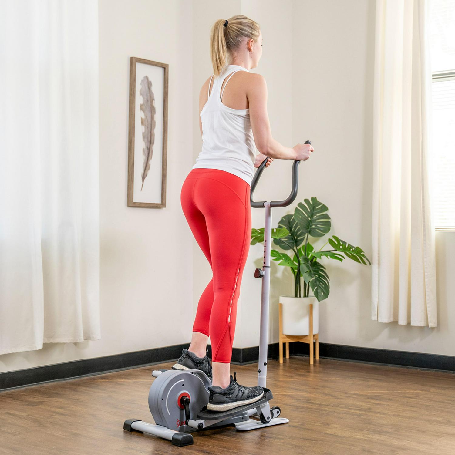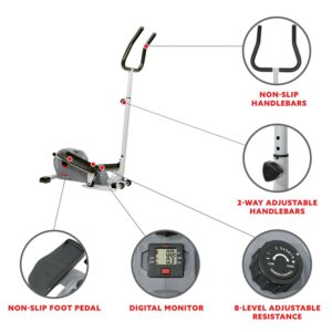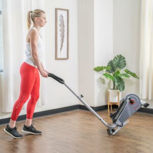 Sunny Health and Fitness Compact Magnetic Standing Elliptical Machine w/ Handlebars – Portable Workout Stepper for Home, SF-E3988