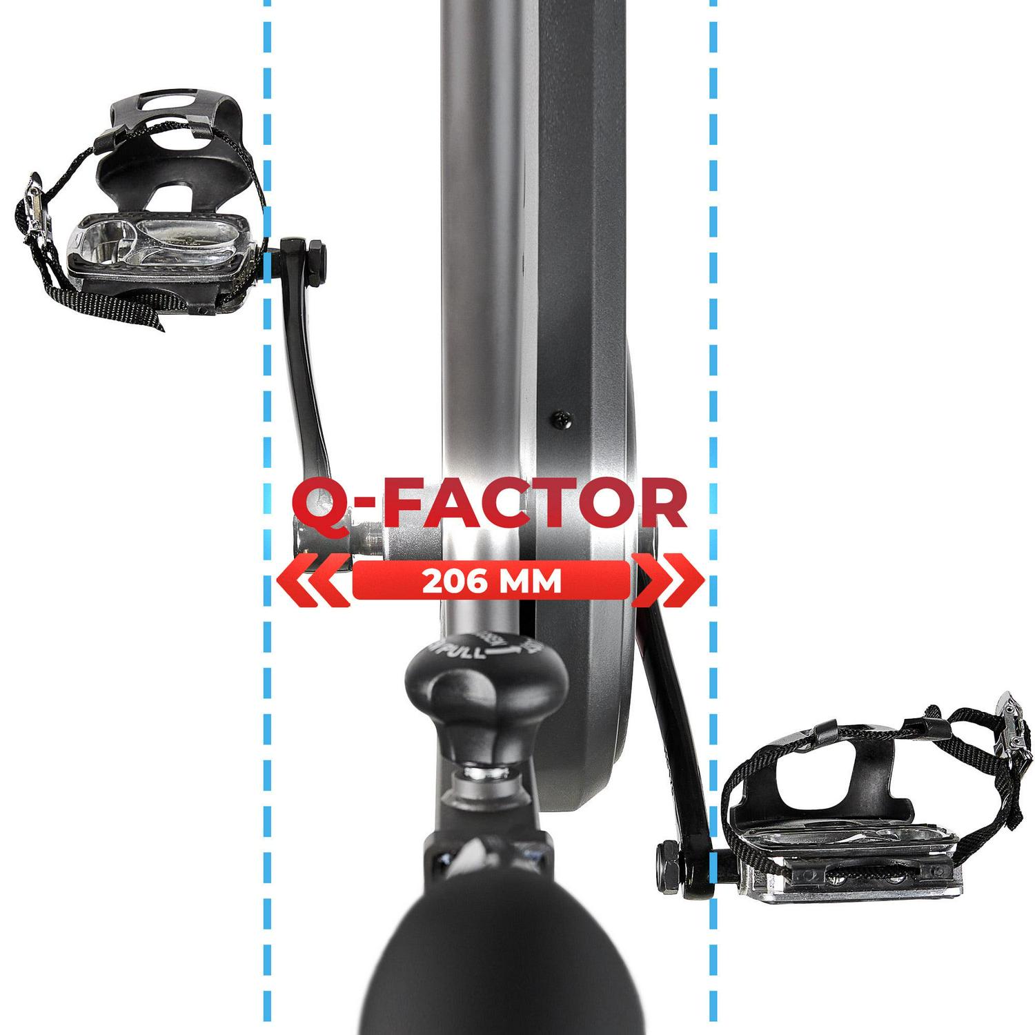 – Q-FACTOR: 206mm: Lower Q-factors provide better biomechanical and ergonomic efficiency. This allows the rider to pedal faster and harder more effectively.