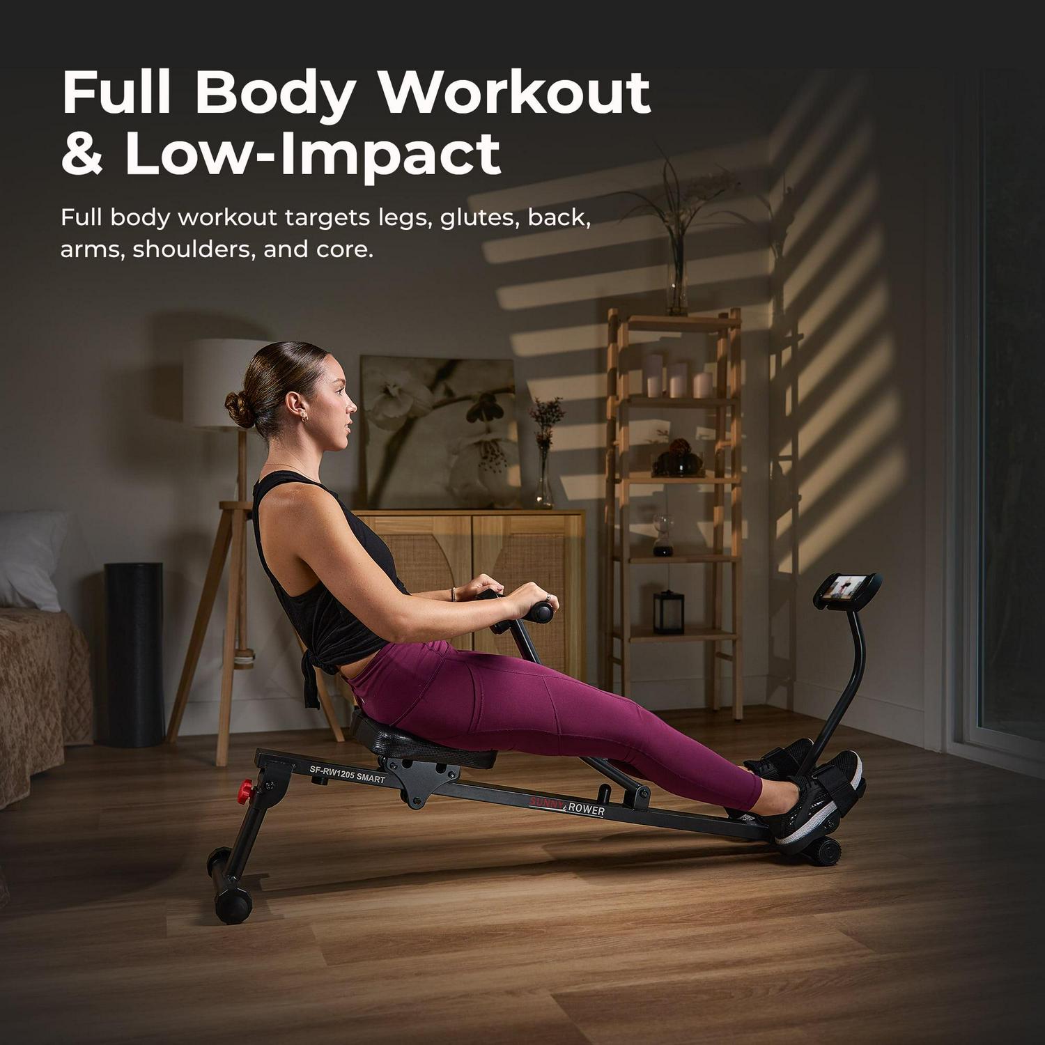 – FULL BODY WORKOUT Complete body workout that engages all major muscle groups with the smooth, hydraulic resistance that targets legs, glutes, back, arms, shoulders, and core. The low-impact rowing motion works your whole body.