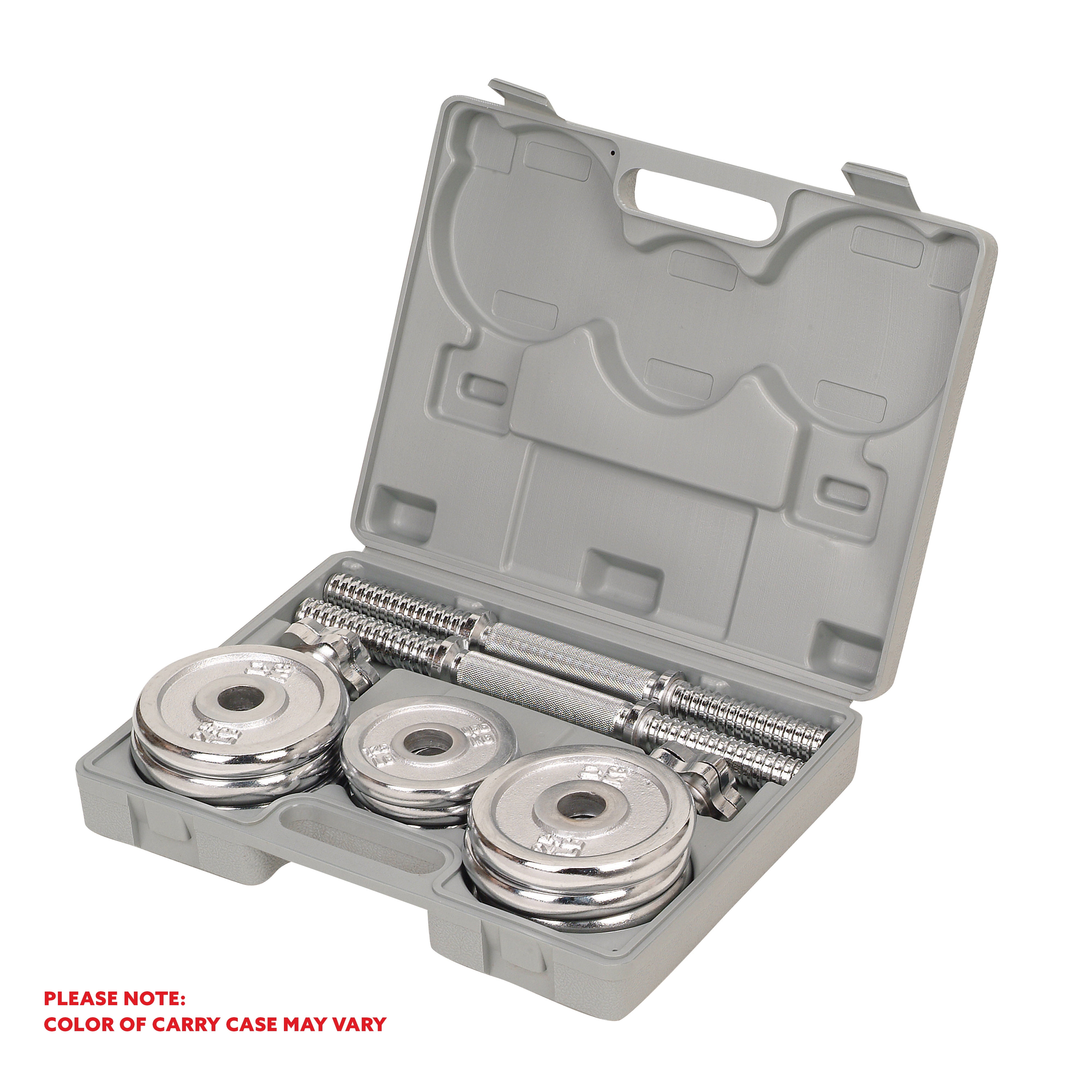 【FREE MEMBERSHIP】 Enjoy FREE access to the SunnyFit App with every Sunny Health & Fitness product—no membership fees! Dive into 1,000+ trainer-led workouts, explore 10,000+ virtual scenic tours, track your progress, challenge others, and much more! KNURLING GRIP: Cross-hatch textured handlebar on the NO. 014 dumbbells provides a comfortable, slip resistant surface so you can stay focused on your arm workout. While curling, the solid steel collars and handle promote maximum grip. ADJUSTABLE STRENGTH TRAINING: Heavy-duty solid steel cogs securely lock onto the adjustable plates. The solid steel handlebar weighs 2.75 lbs. Cogs weigh in at 0.55 lbs. PLASTIC CASE: Enjoy fitness on the go with the convenient dense molded plastic case so you can easily transport your free weights. ** Please Note: Carry case color may vary ** EASY ASSEMBLY: Detaching and reattaching weights is simple. The outside collars lock in the weights for added safety. STRENGTH TRAINING: Perform a wide variety of exercise by incorporating strength training or intensify your lunges or squats using the dumbbells. Suitable for in-home training.