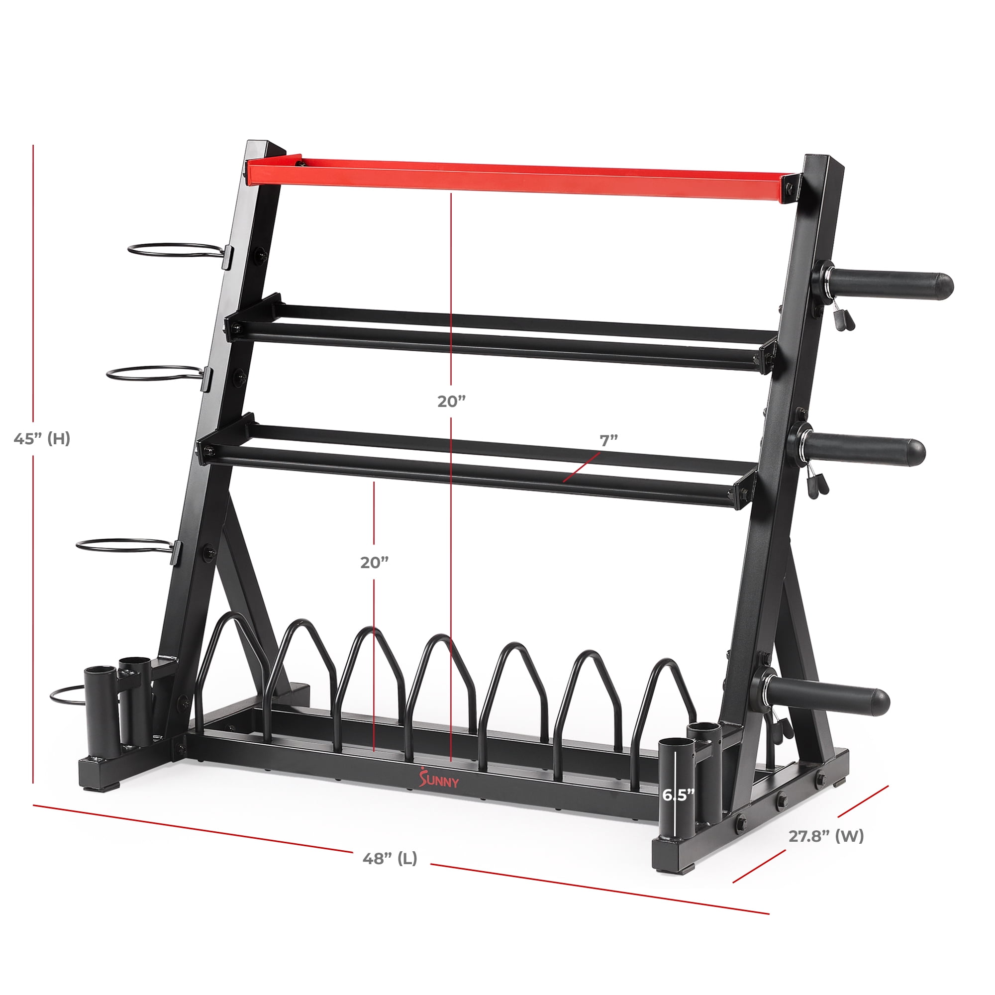 Sunny Health & Fitness All-In-One Weight Plate Holder Storage Rack Stand for Dumbbells, Plates, Weight Organizer, SF-XF920025