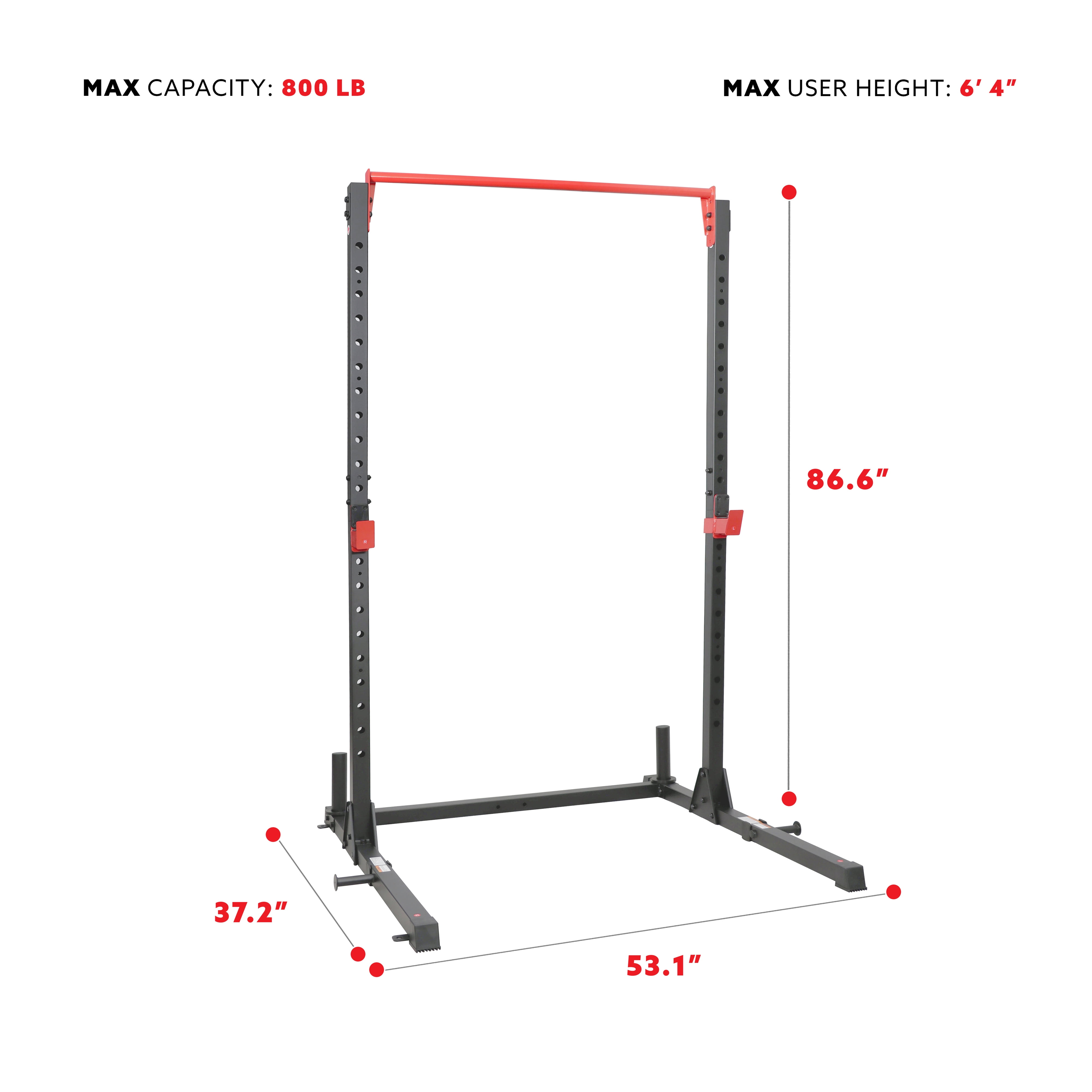 Sunny Health & Fitness Essential 800-lb High Capacity Power Rack Cage with Weight Plate Storage & Adjustable J-Hooks – SF-XF920063