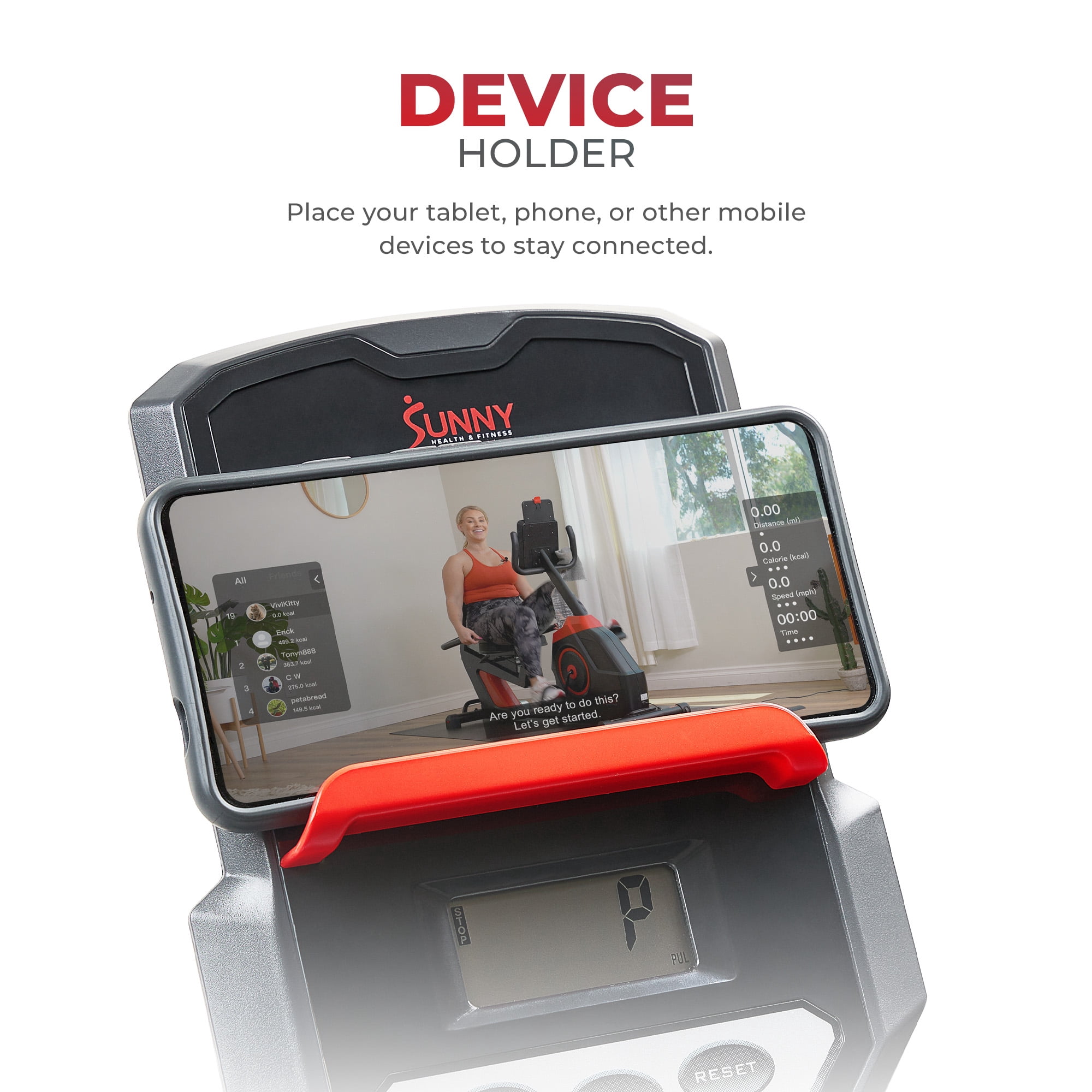 【SMART FITNESS】Cycle along with Sunny Health & Fitness expert trainers on the Sunny Health & Fitness SunnyFit APP. Connect your preferred mobile device through Bluetooth and view your performance metrics in real time. CONNECTED FITNESS: With Bluetooth connectivity, the free SunnyFit app allows you to access 1000+ free trainer guided workouts and hundreds of other fitness programs. Track your progress, set fitness goals, access personalized workout plans, 10,000+ virtual scenic tour simulation and compete with other community members to get to the top of the leader board. Have all the workouts of your choice right at your fingertips, while also feeling supported as a member of this likeminded community. 【PERFORMANCE DISPLAY】Stay on top of your fitness gains and workout results. The display helps you track: Speed, Distance, Time, Calories burned, Odometer, Pulse, and includes a Scan feature. 【VISCOELASTIC SEAT】Specialized supportive foam material and breathable backrest enhances the comfort and riding experience of this stationary recumbent bike. 【MAGNETIC TENSION】Switching-up resistance on this in home cardio machine is easy. Use the dial to cycle through 8 levels of magnetic resistance. 【DEVICE HOLDER】Place your tablet, phone, or other mobile devices to stay connected. Follow along online or through the SunnyFit App with our trainers for certified fitness tips, advice, and lessons. 【TRANSPORTATION WHEELS】In tight spaces, you can tilt and roll away this recumbent stationary bike for easy storage with convenient transport wheels allowing easy movement of equipment. 【STABILIZERS】No more tilting or wobbling during those vigorous biking sessions using the Endurance Series’ floor stabilizers. 【SELF LEVELING FOOT PEDALS】The non-slip adjustable foot pedals have a large surface area to push hard and keep users’ feet stable during the entire pedal stroke. The adjustable straps keep the user’s feet secure and avoid sliding forward or to the side.