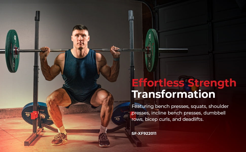 Introducing the Sunny Health & Fitness Multifunctional Adjustable Bench Press Squat Rack (SF-XF922011) – the space-saving solution for versatile strength training. Achieve full-body fitness with bench presses, squats, shoulder presses, incline bench presses, dumbbell rows, bicep curls, and deadlifts, targeting multiple muscle groups.Crafted with a robust one-piece steel frame, this equipment offers unparalleled stability and durability, ensuring safety during intense workouts. Easily customize your workout experience with versatile height adjustments for precision and comfort. Safety is paramount, with spotter arms providing top-to-bottom protection, and an integrated weight holder rack ensures easy access to your weights.Boasting a maximum weight capacity of 600 LB (275 KG), this equipment accommodates users of varying fitness levels, supporting challenging workouts and heavy lifting. Effortless assembly and user-friendly adjustments streamline your training experience. With over 20 years of fitness excellence, Sunny Health & Fitness stands by its commitment to quality and offers a 1-year warranty on the structural frame. Elevate your fitness journey with the Multifunctional Adjustable Bench Press Squat Rack.