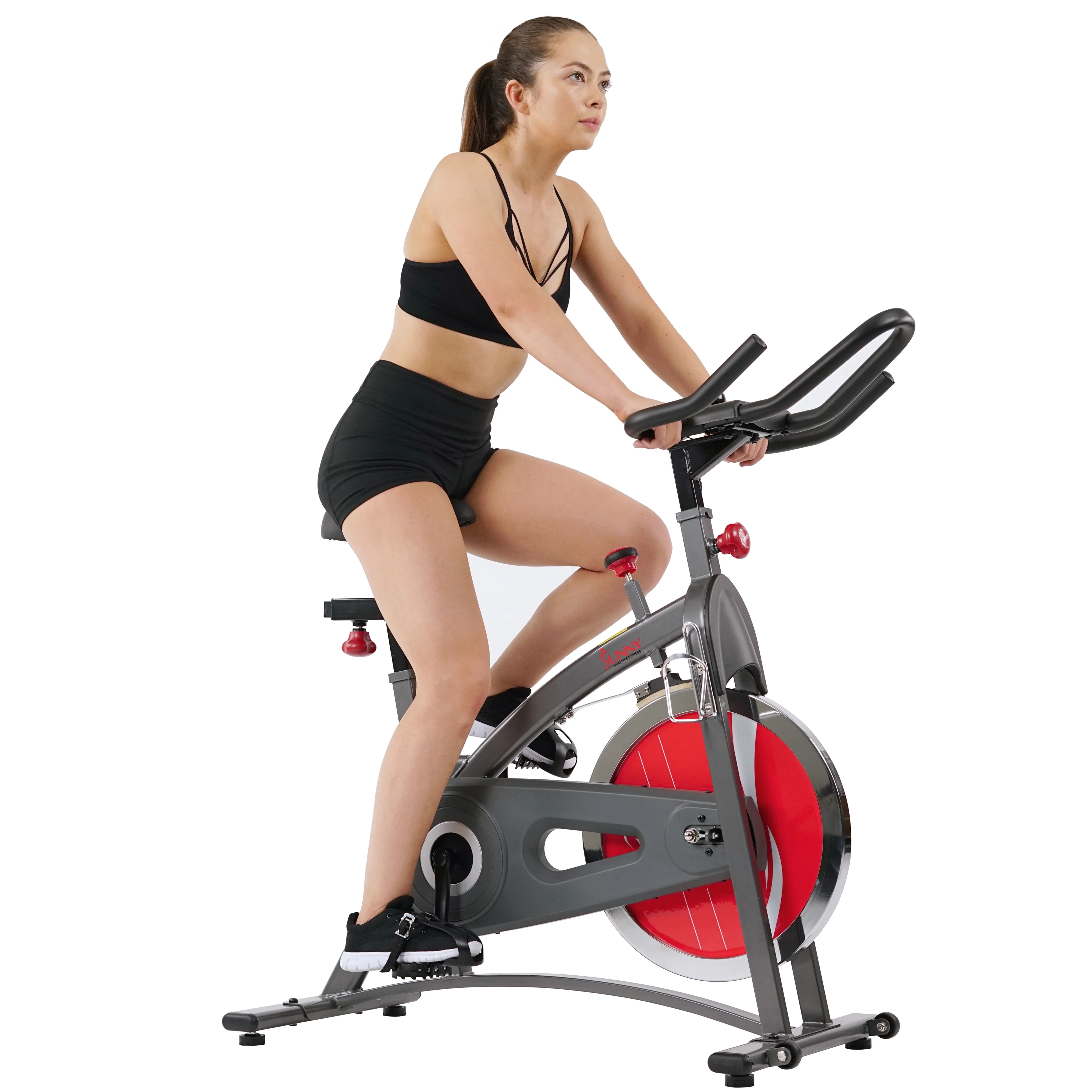 The new standard in home fitness! Sunny Health & Fitness SF-B1423 Belt Drive Indoor Cycling Bike offers all of the necessities for an amazing cycling workout along with any and everything all at-home fitness enthusiasts could wish for! Between its smoother, quieter belt-drive operation and total portability with transportation wheels, your home will transform into a gym and back in no time! Exercising in the comfort of your own home has never been so easy, convenient, or fun! Its fully adjustable handlebars and high-density padded seat offer a completely customizable experience for ultimate user experience and compatibility. Featuring an LCD screen that displays time, speed, distance, calories burned, and scan, tracking your progress toward wellness couldn’t be simpler. The heavy-duty steel frame with bottle holder and press down brake system with adjustable resistance provide a safe, efficient, versatile cycling workout!