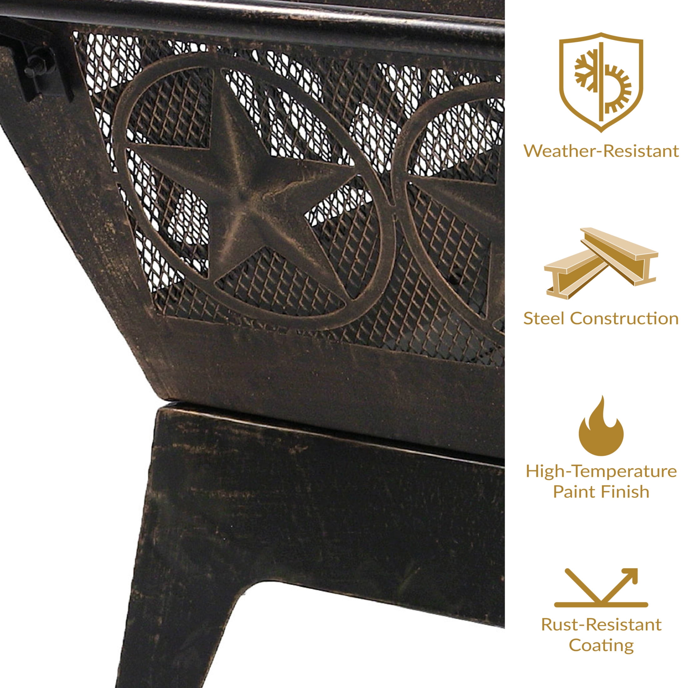 Sunnydaze Northern Galaxy 32″ Square Wood-Burning Bronze Finish Steel Fire Pit with Grate