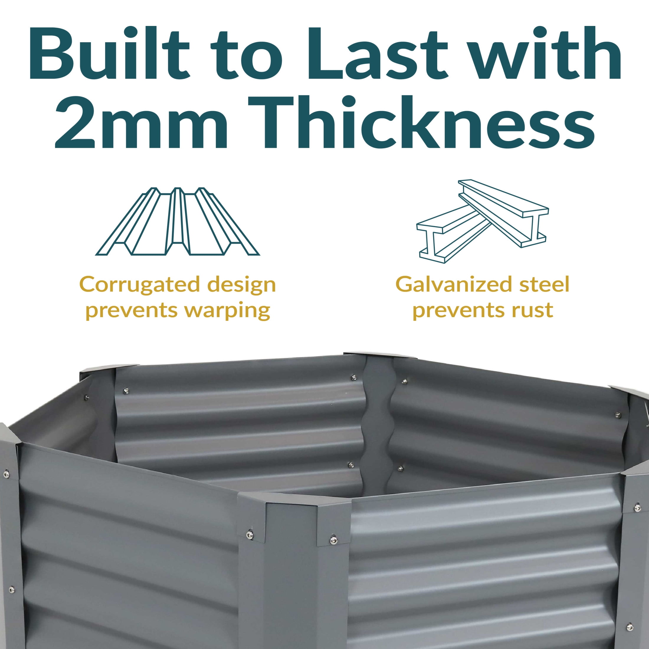 Sunnydaze 41″ x 35.5″ x 16.25″ Hexagon Gray Galvanized Steel Raised Garden Bed