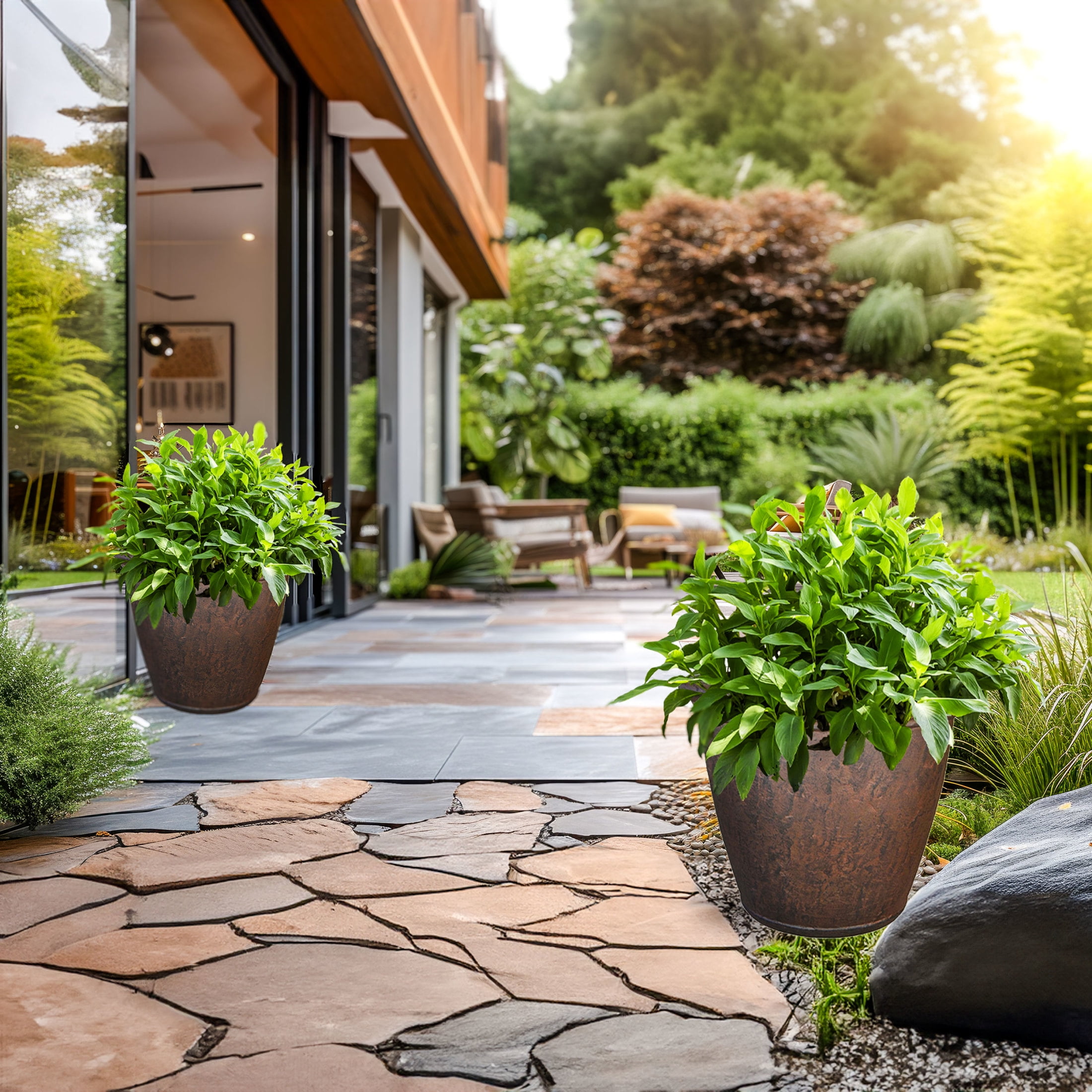 Add rustic style to ferns, roses, flowers, and other plants with the 24″ Anjelica planter. It will add elegant style to plants and existing decor when placed on any indoor or outdoor patio, deck, entryway, front porch, garden, or yard. The flowerpot features a sleek, rolled rim and a couple rows of ribs for a contemporary and decorative touch. It is designed for all weather conditions due to its linear, low-density polyethylene (polyresin) construction and UV-resistant, hand-painted finish for a unique look from piece to piece. The double-wall design with a full-depth inner wall allows for optimal root insulation without compromising the soil capacity. Also, for windy environments, placing gravel or sand in the space between the 2 walls can help stabilize it against stronger winds. The planter can be used indoors as well. Be sure to use a protective saucer when placing it indoors to protect floors from damage.