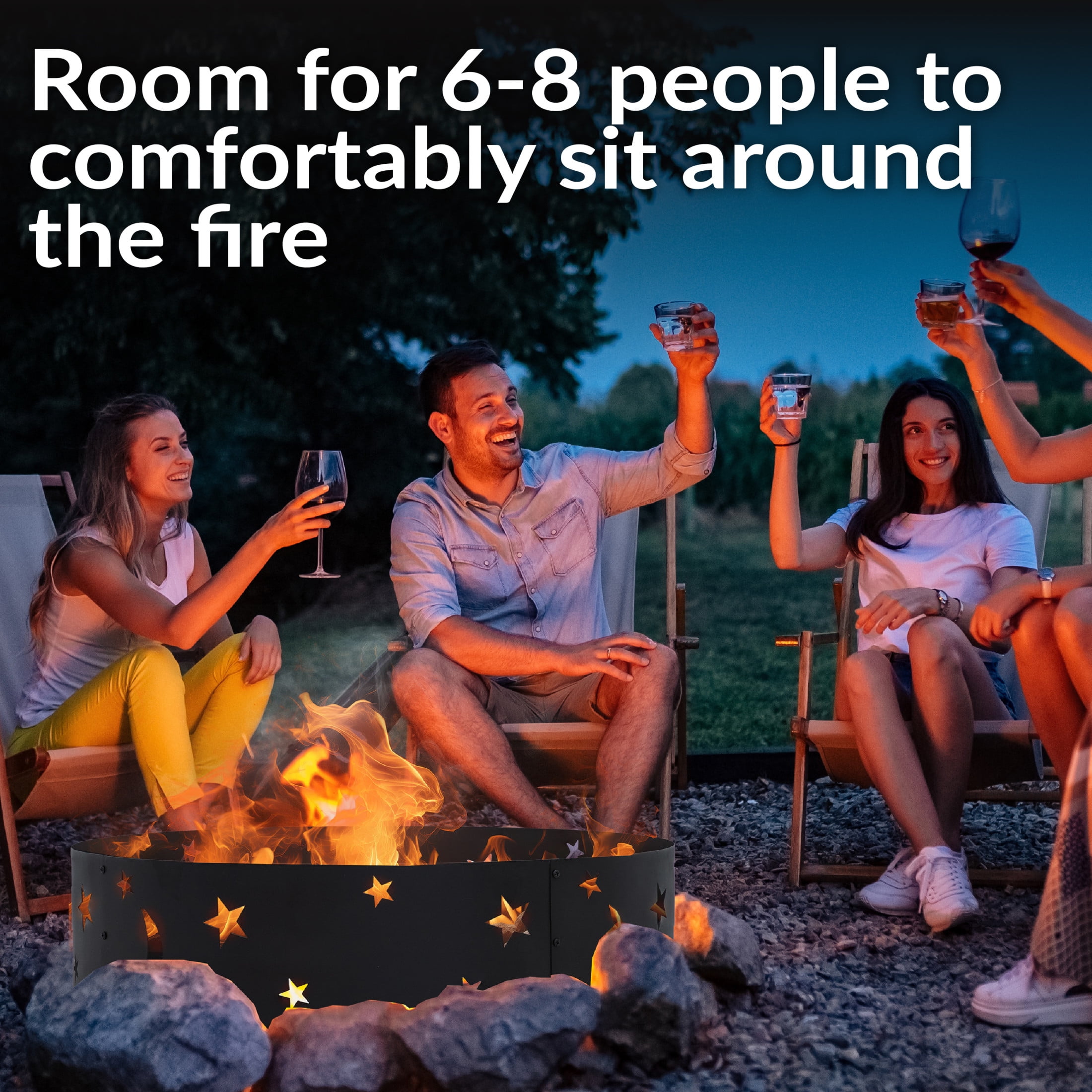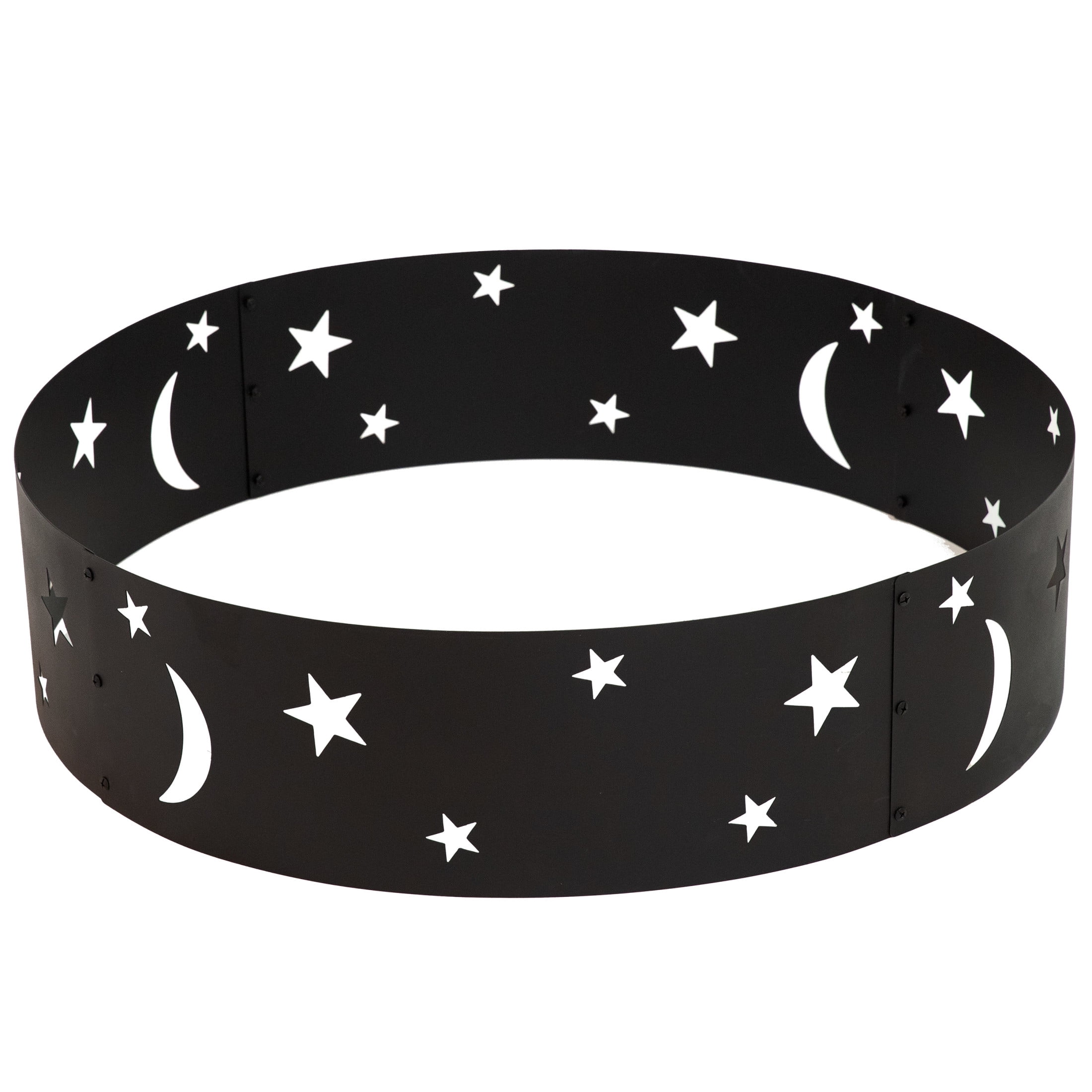 Create cozy memories by the warmth of a fire with this sky inspired metal fire pit ring. Made of durable steel with a high-temperature finish, this metal fire pit ring will withstand the harsh outdoor elements and lasts many years. Enjoy an evening with friends around a gorgeous fire with the metal fire pit ring. This beautiful, portable fire pit is simple to set up and easy to use. It comes in 4 pieces that are easy to attach for assembly. The cosmic cut-out designs on the fire pit are sure to enhance any evening campfire. Whether at a campground or in the backyard, safely contain a fire in style with this fully portable fire pit.