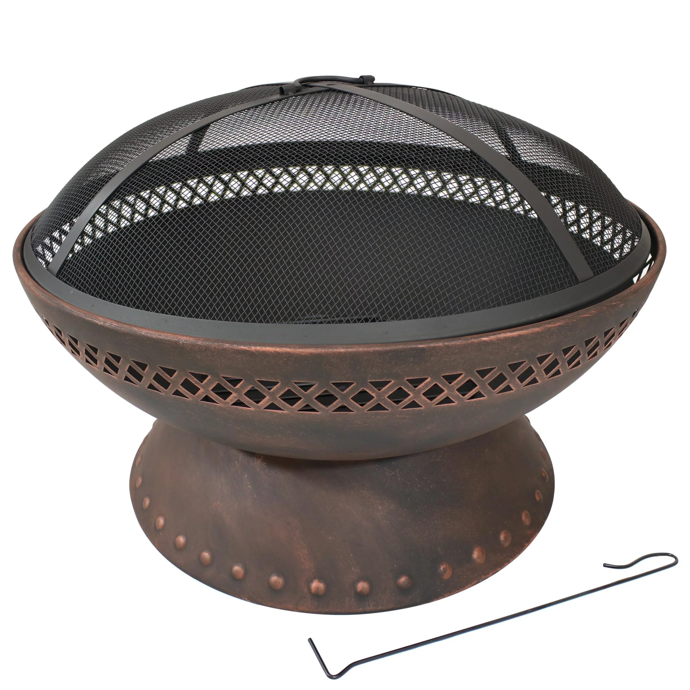 Sunnydaze 29″ Round Wood-Burning Bronze Finish Steel Fire Pit Bowl with Spark Screen and Poker