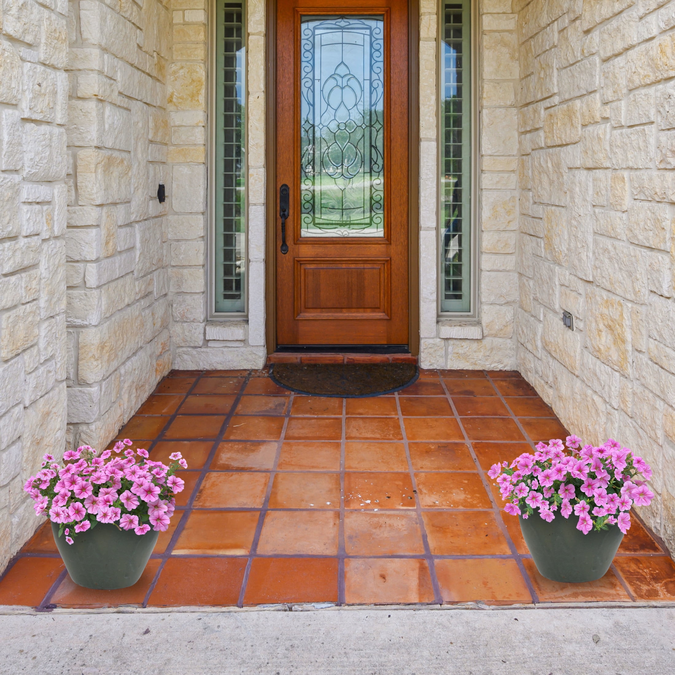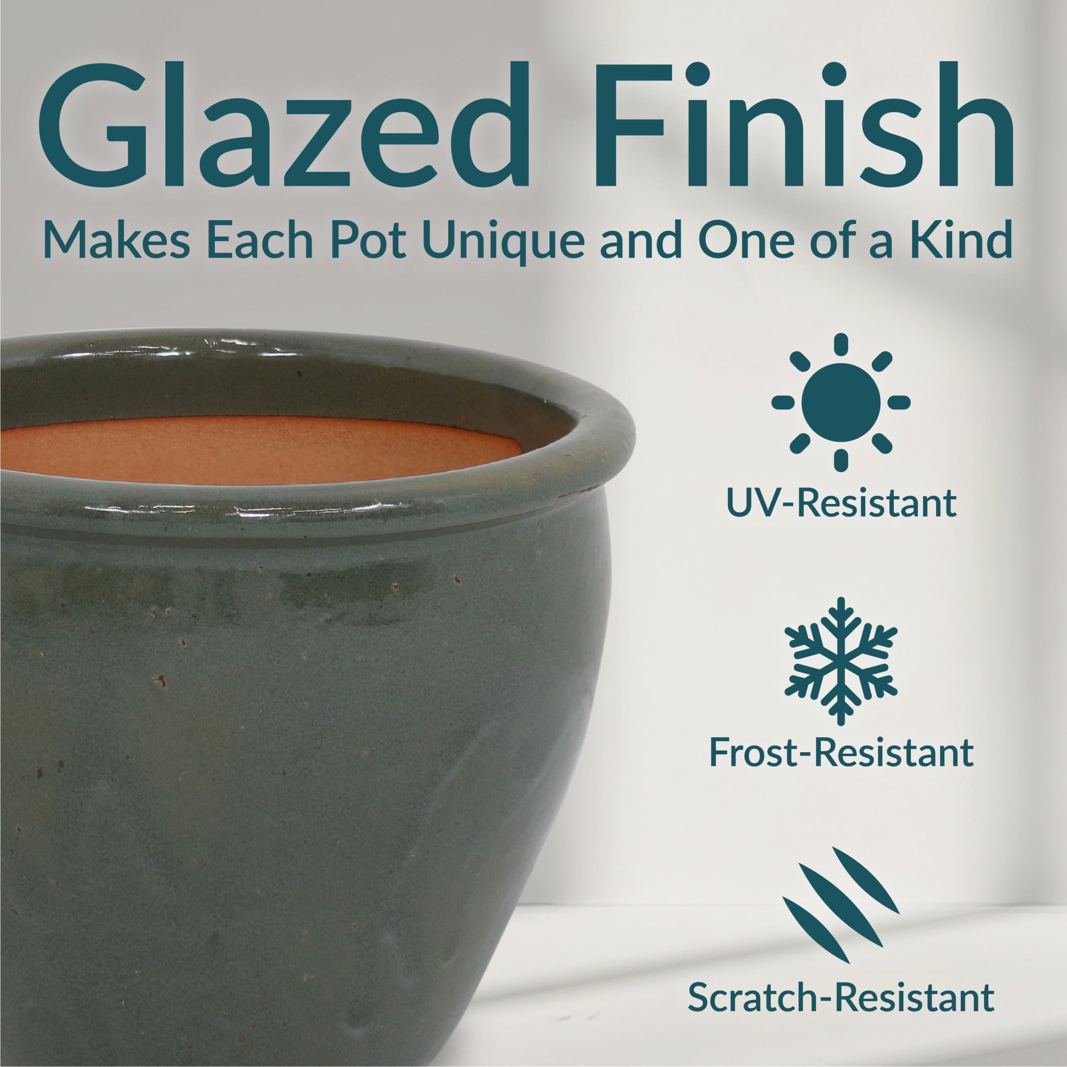Use this set of 2 pots to add sophistication, class, and life to any living space. The Chalet ceramic planter has a beautiful, glazed exterior and features a rich color scheme that is sure to complement any other pots, decor, furniture, or other indoor or outdoor aesthetic with ease. Available in various color schemes, find the right fit for your space effortlessly. Featuring a hand-painted design, each pot of the same design is unique. The ceramic material is weather, frost, and UV resistant to make sure it won’t crack, break, wear, or chip against harsh wind, rain, snow, sun, or even snow. Also, the glaze finish provides a stunning, shining, and beautiful feature to your space while further protecting your pot from the elements. It also features drainage holes to help keep outdoor plants in prime condition. For use indoors, simply purchase a saucer separately so it doesn’t leak on the floor, table, or other surfaces.