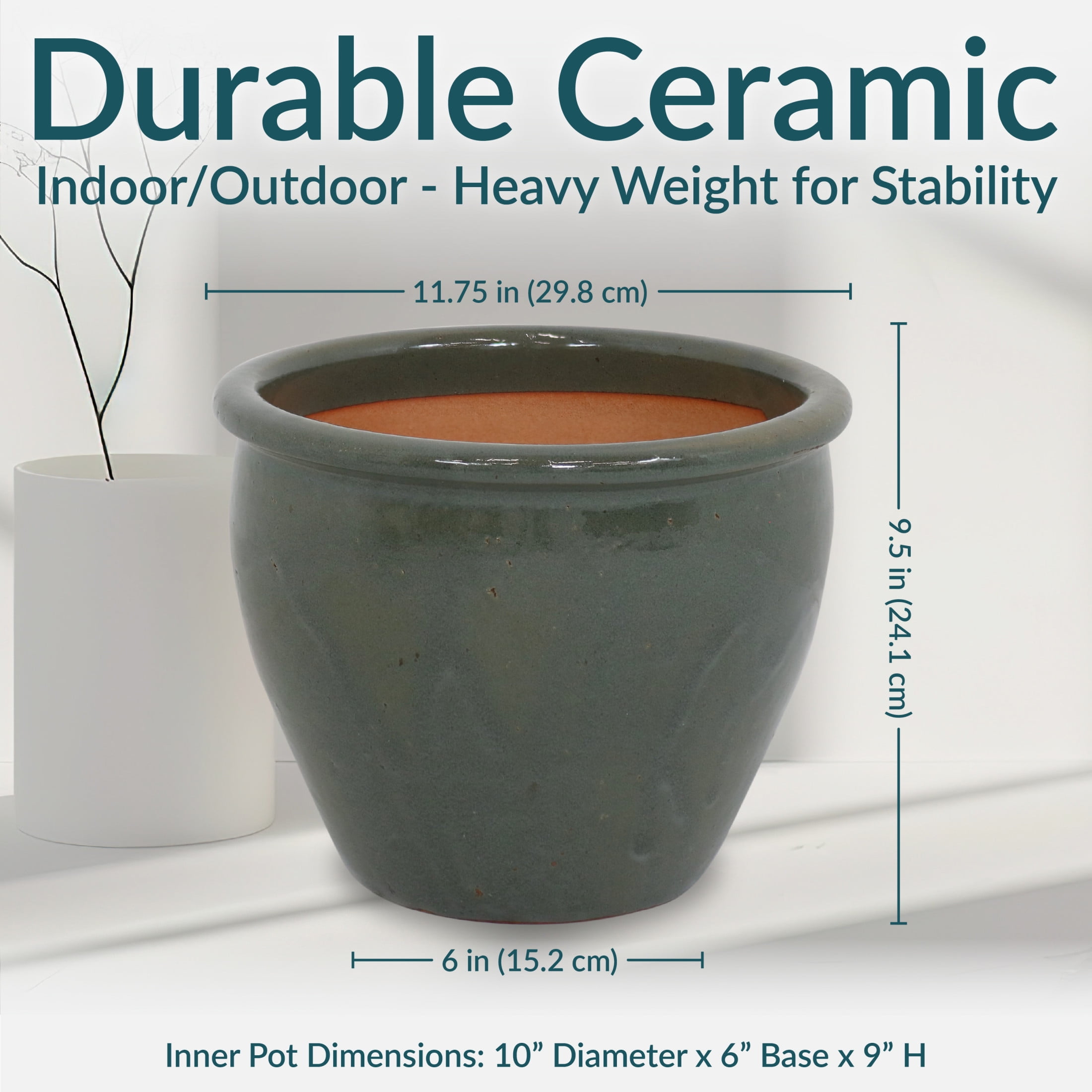 GROW BEAUTIFUL PLANTS AND FLOWERS: Each planter measures 11.75″ in diameter (outer top, 10 inches inner top diameter) with a 6″ outer base diameter (5.5” inner base diameter) x 9.5” H (9″ inner H). Each planter weighs 11 lbs per planter. It has a 1″ drainage hole and 7.6 quarts (gallon) soil capacity. DESIGNED FOR BEAUTY AND STRENGTH: Ceramic pots are hand-painted with a rich, glazed finish and placed in a kiln for classic, shining beauty. Please note, variations in color may occur due to manual glazing and the unique kiln firing process. INCLUDES 2 PLANTERS: Use this set of 2 flower pots for favorite herbs, greens, flowers, or vegetables. FOR INDOOR OR OUTDOOR USE: If using indoors please place a saucer beneath the flower pot to prevent water and soil leakage on the floor or other surface. Drainage holes in the bottom of the pot provide optimal air circulation and prevent water pooling. WORRY-FREE PURCHASING: Sunnydaze Decor backs its products with a 1-year manufacturer’s warranty.