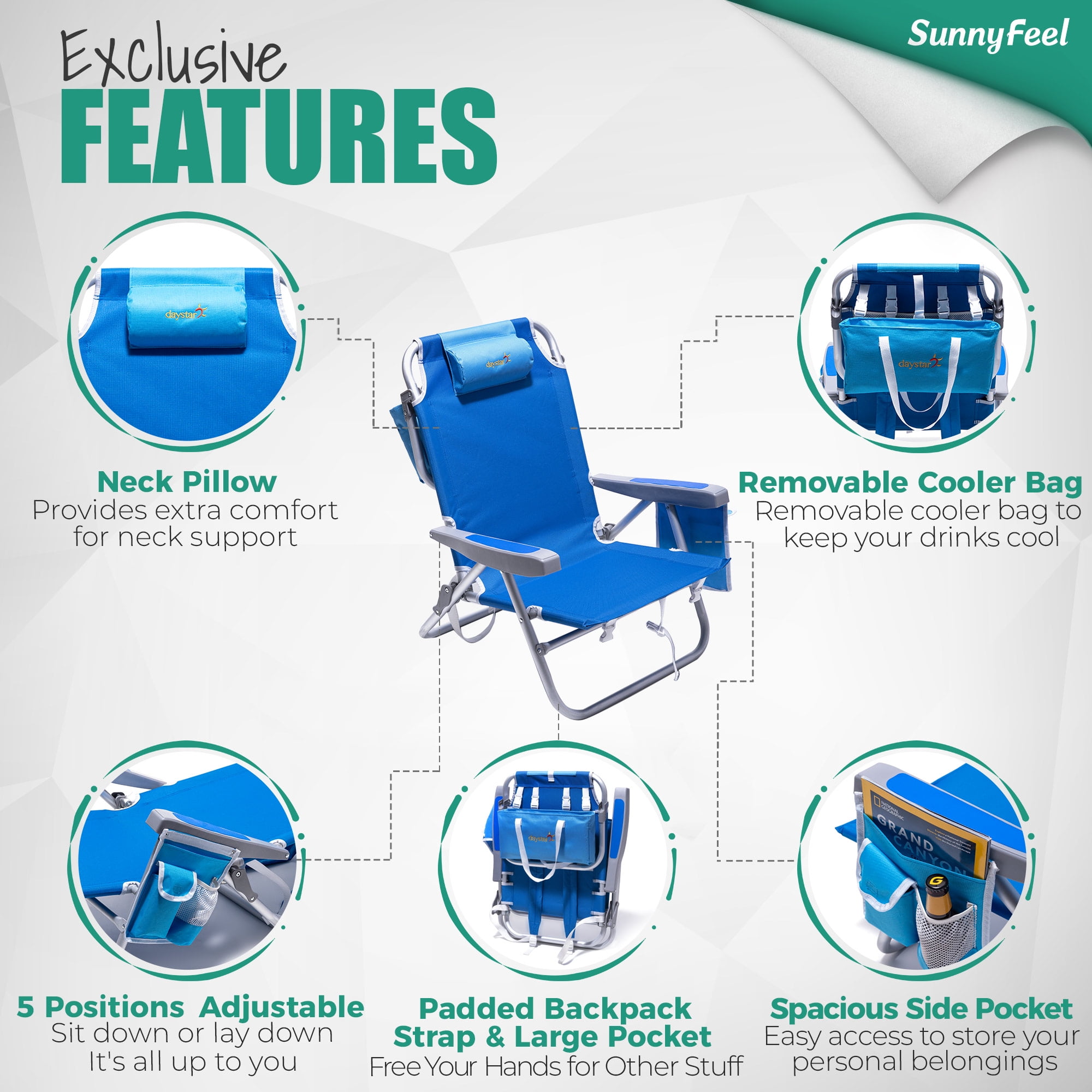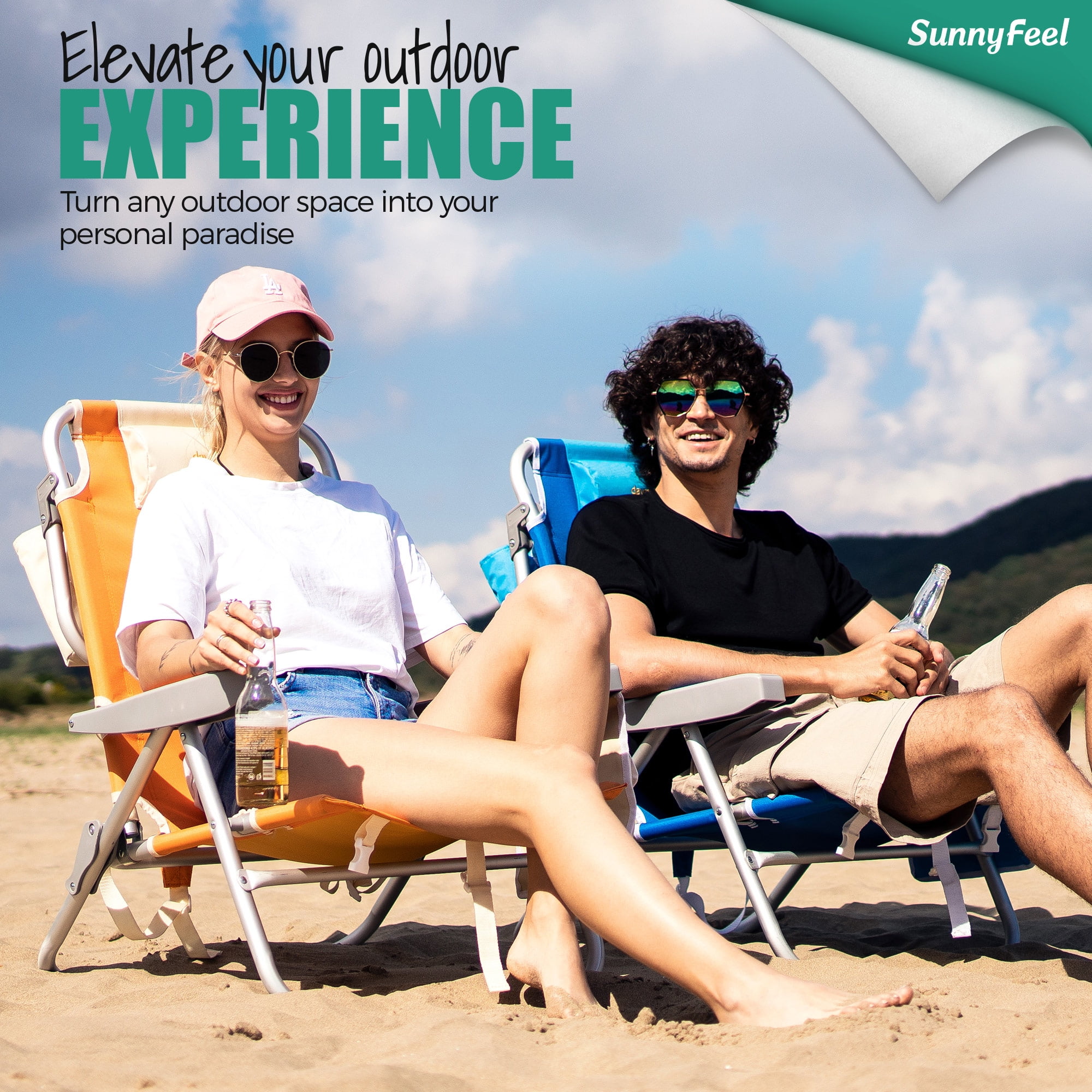 Sunnyfeel Low Beach Chair 5 Position Lay Flat, Portable Lightweight Folding Backpack Chair with Cooler Bag