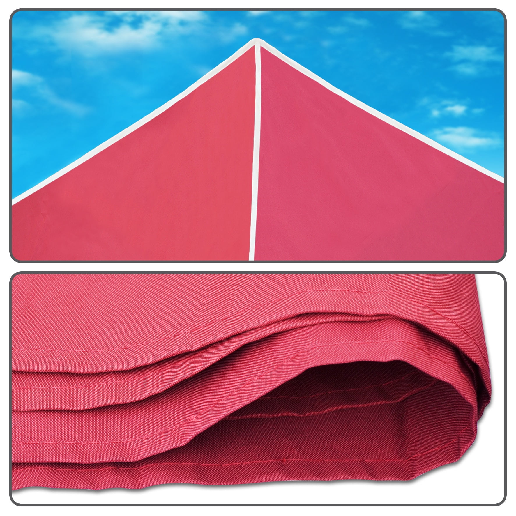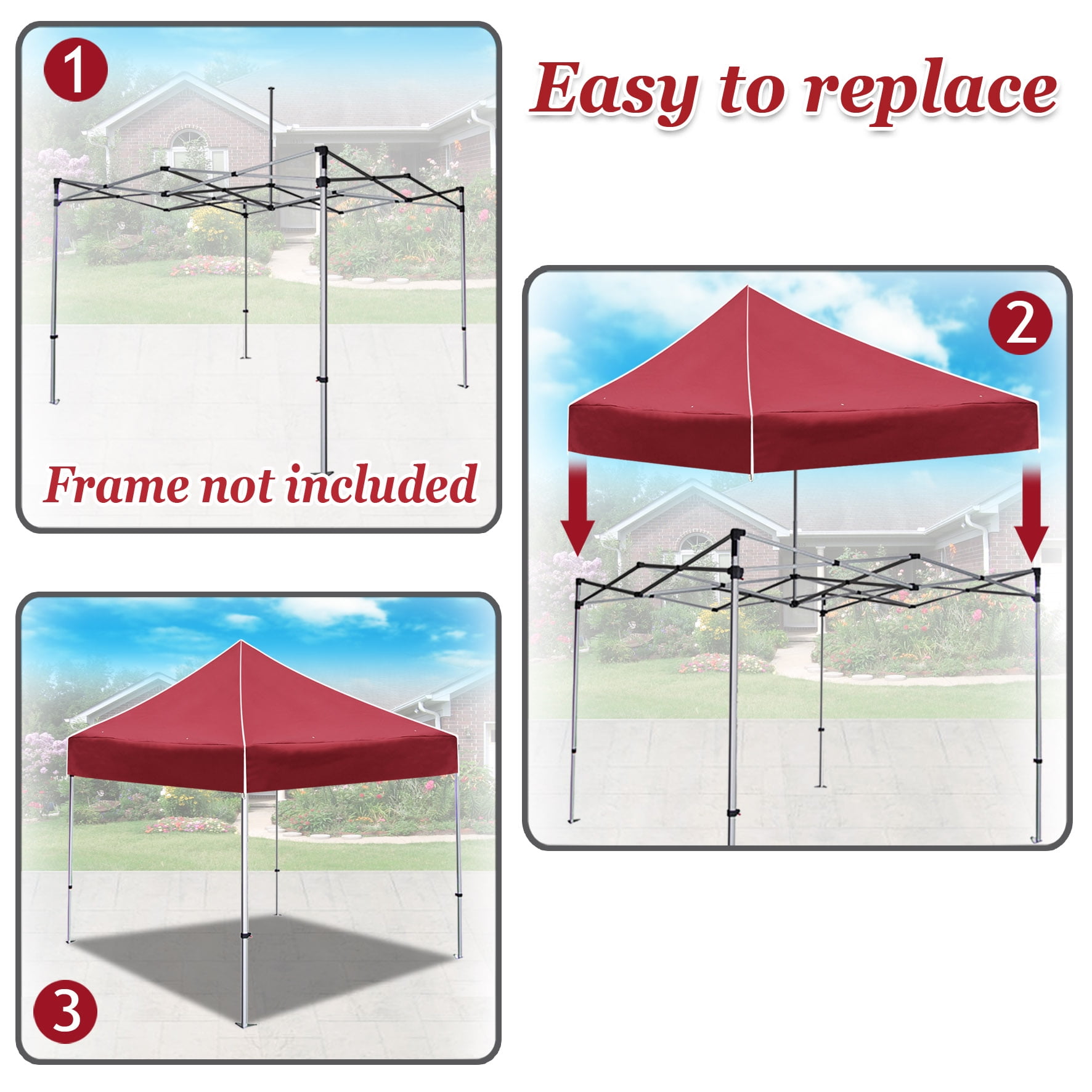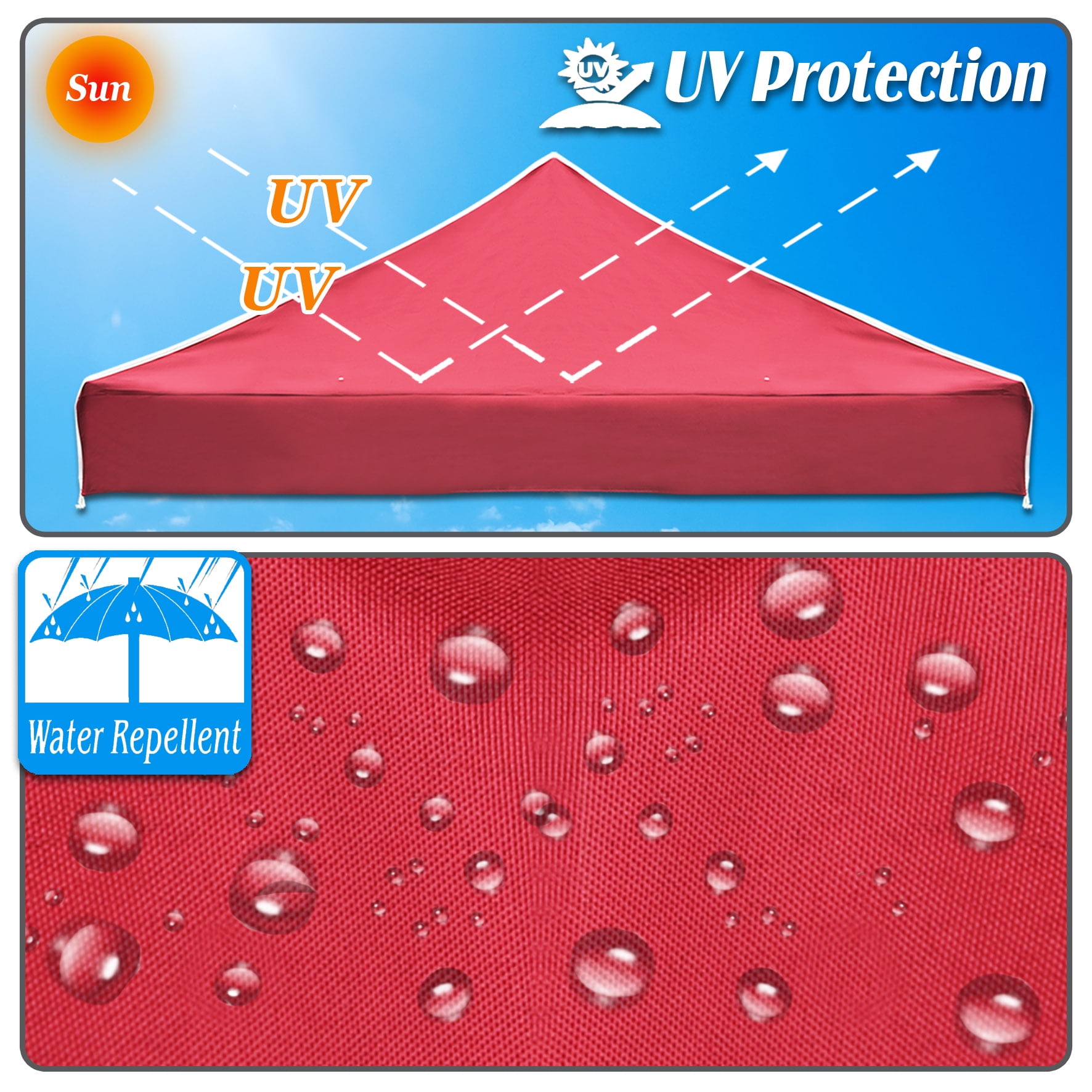 Size: 117″x 117″x 11.8″ Easy to replace the canopy on gazebo frame, very convenient Made of Polyester Material Blocks up to 95% of the suns UV Rays. Ideal for recreational, party, BBQ and commercial use