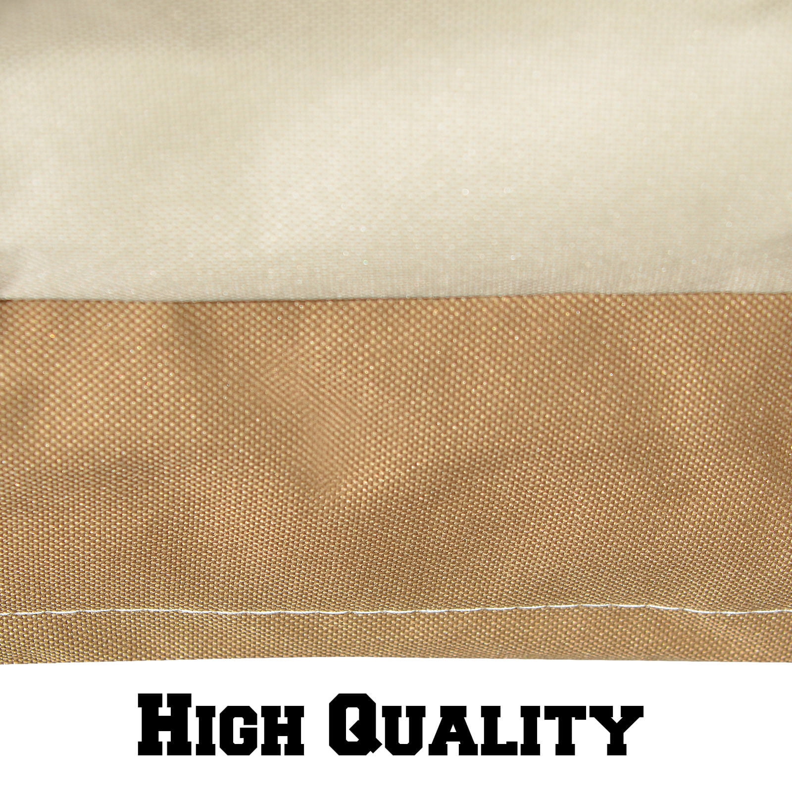 High quality and brand new, 100% waterproof. perfect for outdoor loveseat or bench Cover Size: 89.76″(228cm) L x 34.25″(87cm) W x 33’’(84cm)/ 23.62″(60cm) Elastic hem cord with a toggle allows adjustment for a tight and custom fit. Material: 600D/PVC Oxford fabric Color: BEIGE Gross Weight(LBS/KG): 5.5lbs/ 2.5KG