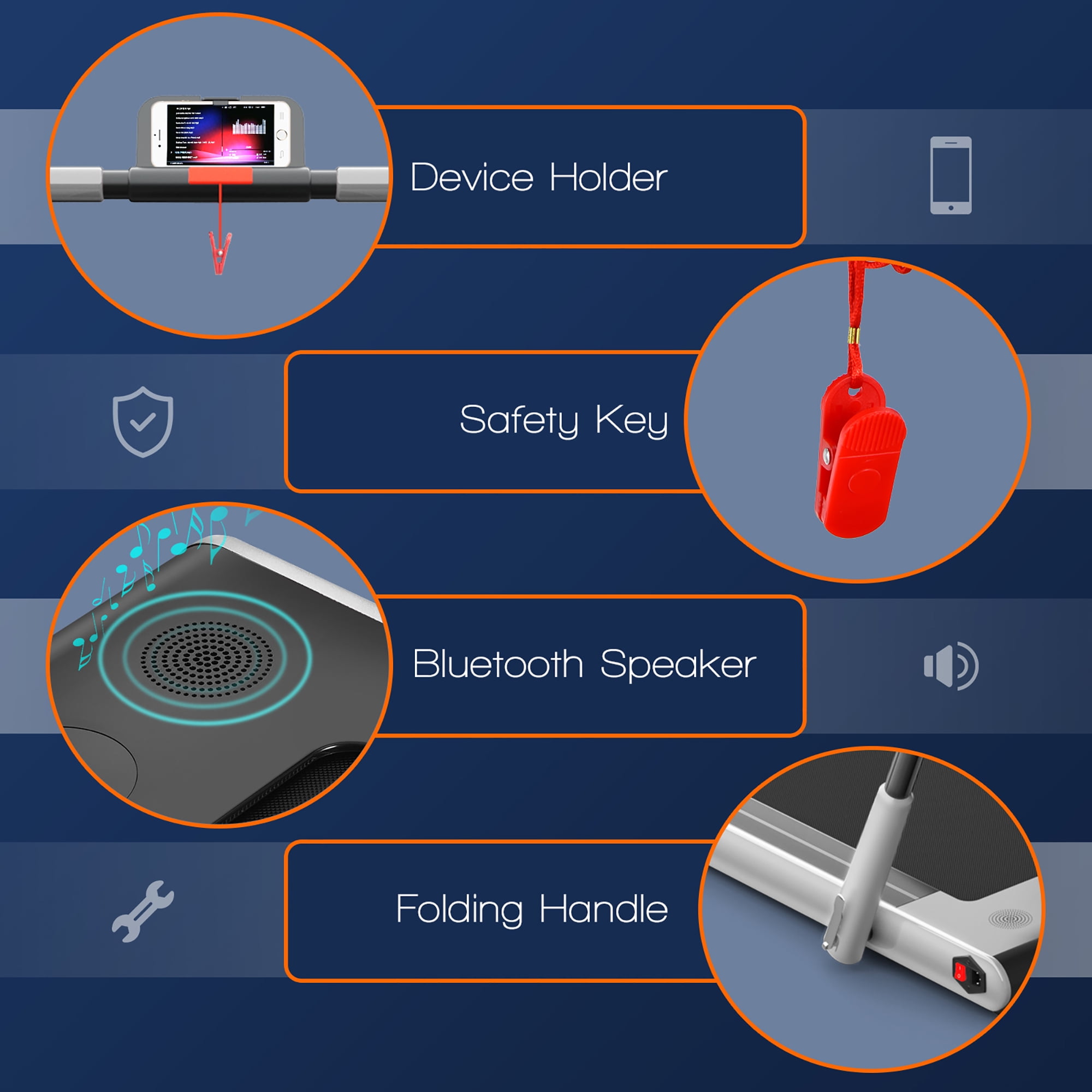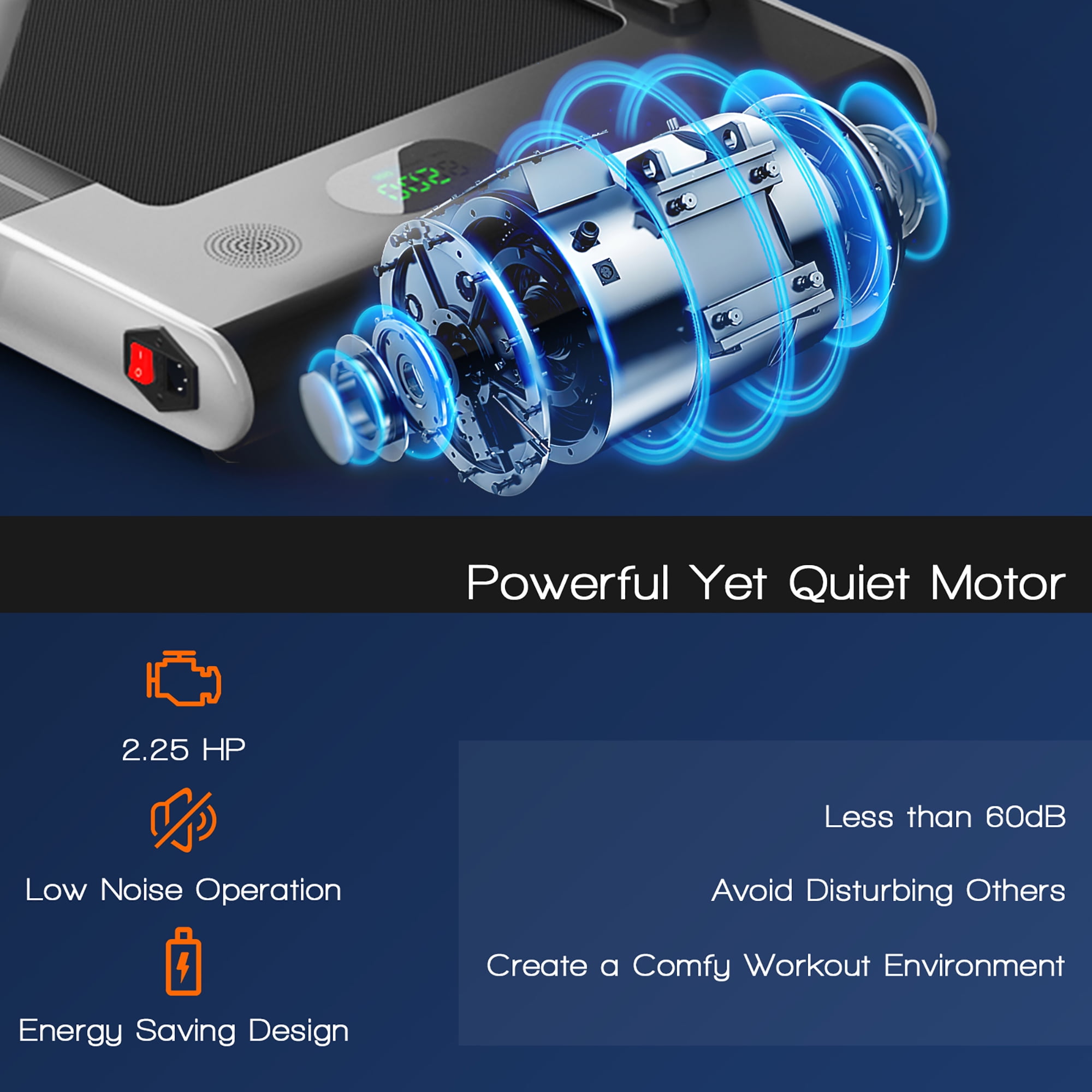 Innovative 2-in-1 Folding Treadmill: Compared to ordinary treadmills. our 2-in-1 treadmill has 2 modes to meet your different sports needs. so you can easily have a healthy body. When the riser is folded. it can be used as a under desk treadmill at a speed of 1-4km/h. so you can do other things while walking. When the riser is raised. the running speed is 1-12km/h and you can run to reach your fitness goal. Powerful 2.25HP Quiet Motor & Shock Reduction System: With a powerful and ultra-quiet 2.25HP motor. this treadmill allows you to walk or run without disturbing others. making it ideal for home and office use. With a sturdy and durable steel frame and multi-layer shield design. it’s shock-absorbing and noise-reducing. making your running quieter. safer and more comfortable. Non-slip Running Belt & Multifunctional LED Display: The 5-layer non-slip texture running belt features a spacious running area(40” x16”). providing an effective and safe cushion for your knees and muscles for a superior running experience. The LED display clearly shows time. speed. distance and calories. monitoring your progress in real time and keeping your movement data at a glance. With Bluetooth Speaker. Phone Holder & Remote Control: Connect the treadmill to your phone through Bluetooth. so you can play music while you are exercising. You can also use the phone holder to watch videos or chat with friends. The remote control is convenient to adjust the speed of movement and stop instantly. Equipped with a safety key to shut down immediately in an emergency to protect your safety. Easy to Move and Store & Hassle-free Warranty: The compact. foldable design and built-in transport wheels make it easy to move and store the treadmill to save space. And it’s out of the box and doesn’t need to be installed. It has CE. ROHS.CB.EN957.IEC certifications by SGS. so you can rest assured to buy.