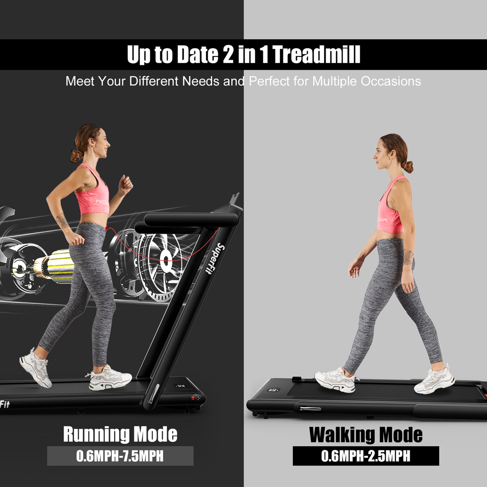 SuperFit Up To 7.5MPH 2.25HP 2 in 1 Single Display Screen Treadmill Remote Control W/ APP Control Speaker Black