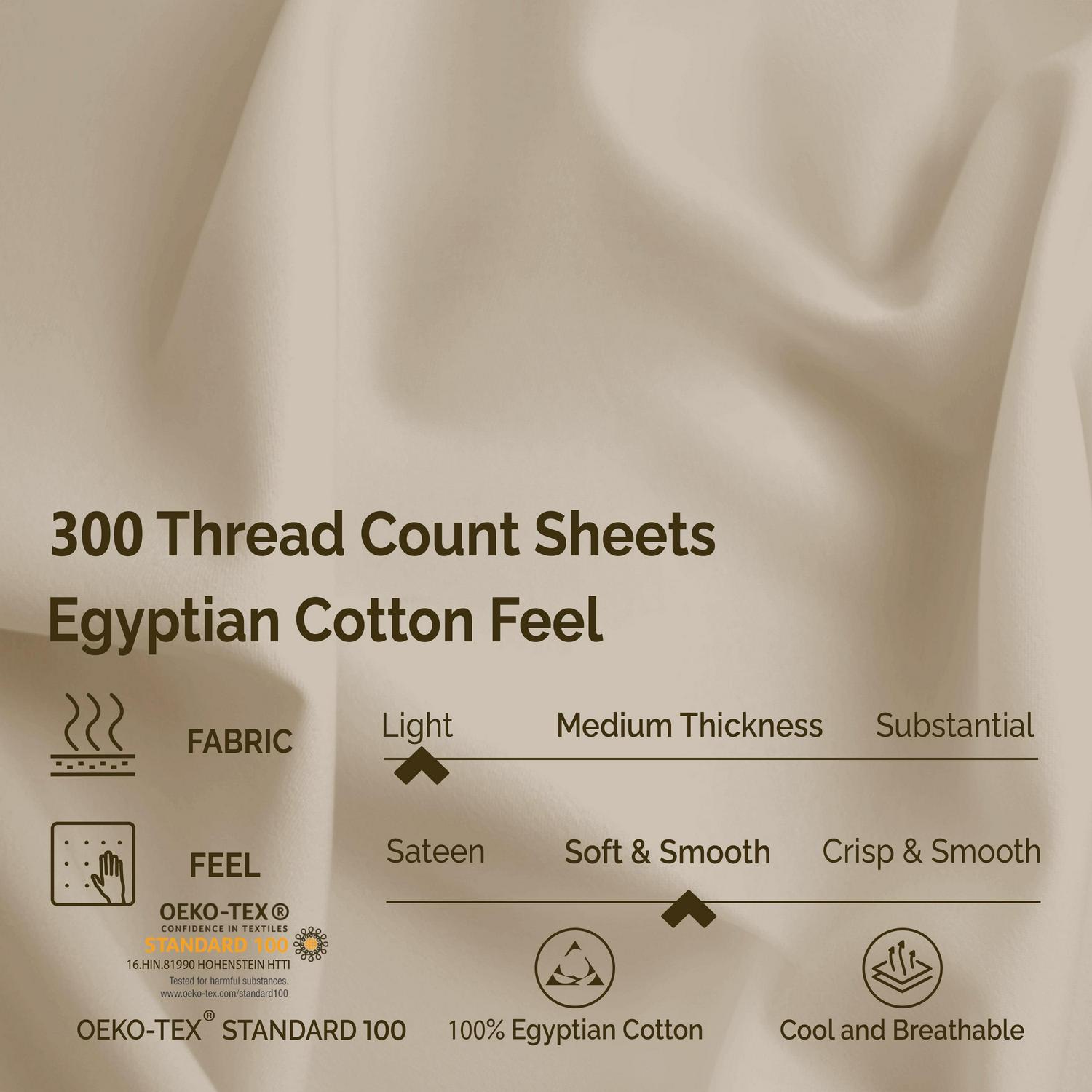 Superior 4-Piece 300 Thread Count Egyptian Cotton Sheet Set, California King, Ivory