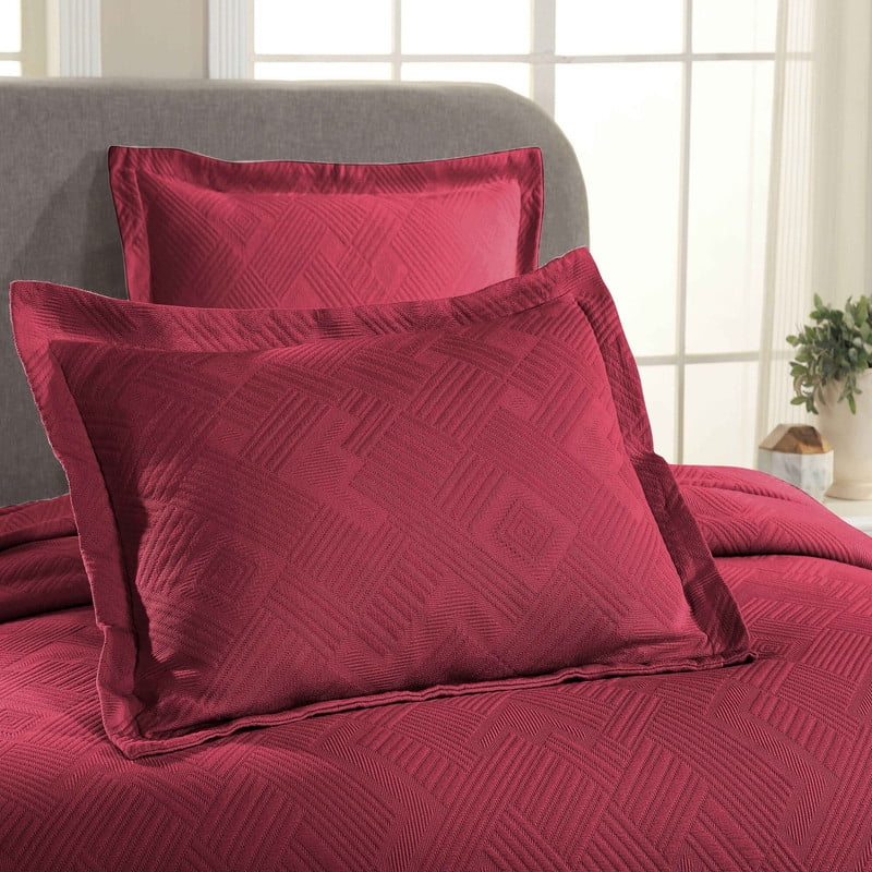 Superior Geometric Fret Cotton Decorative Bedspread and Sham Set, Twin, Burgundy