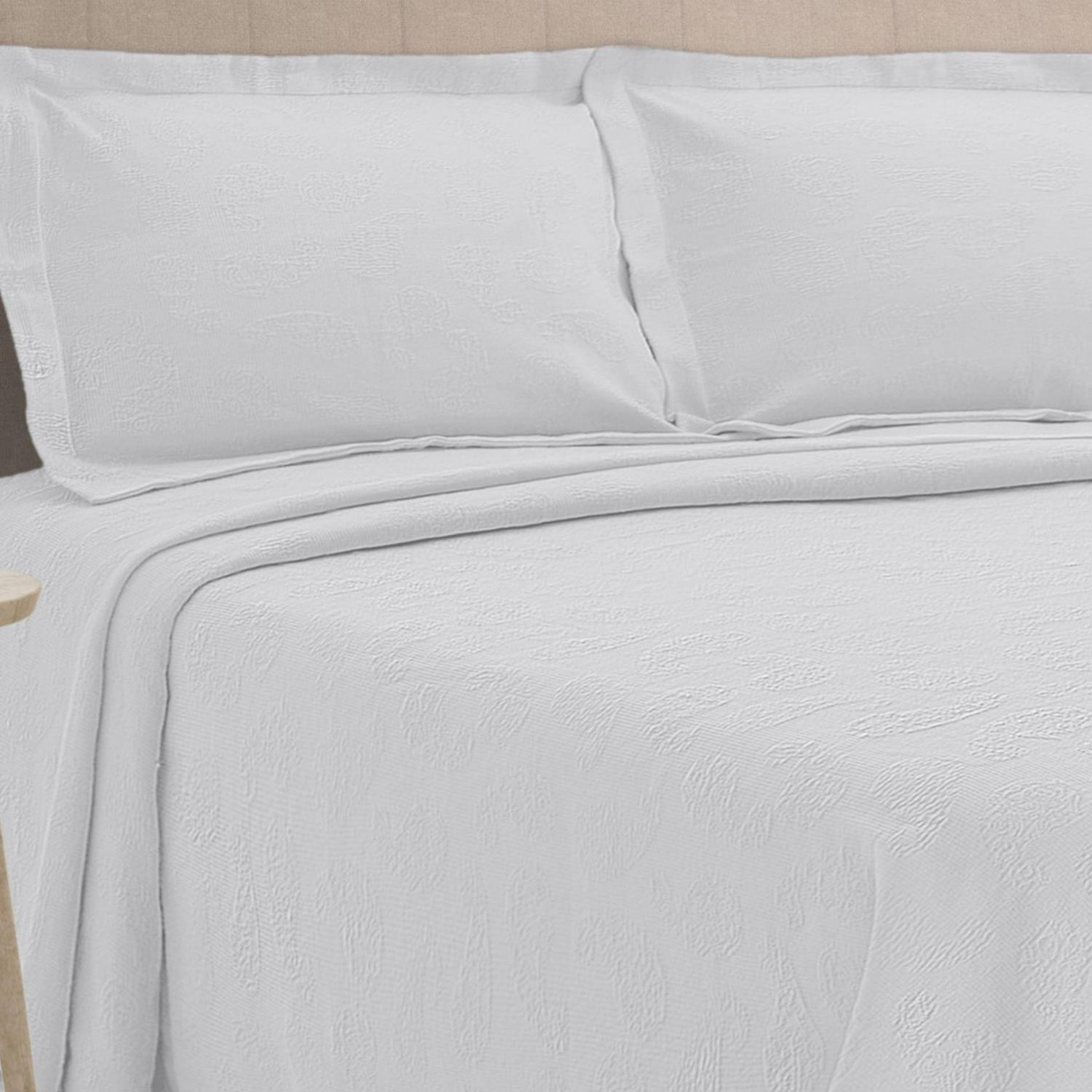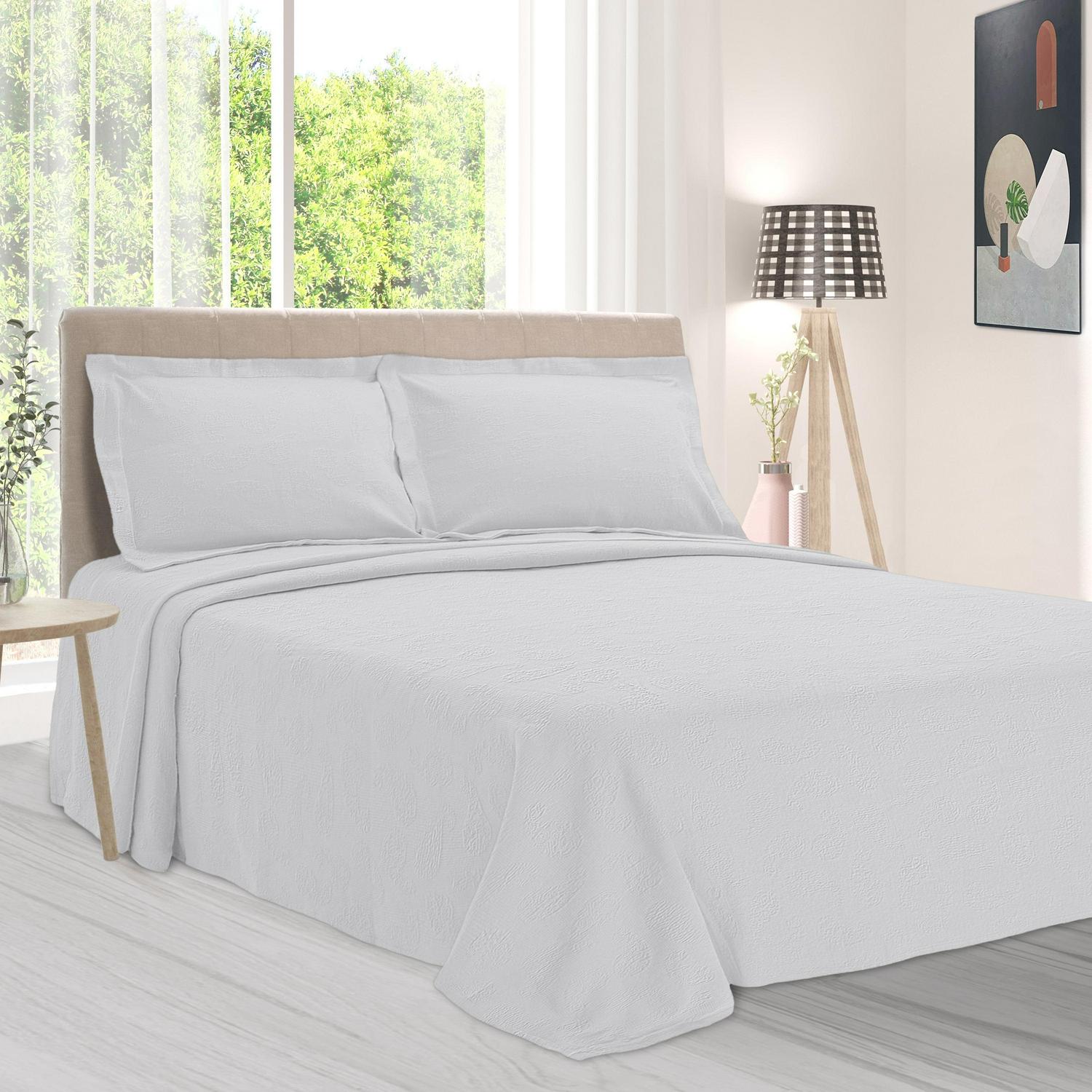 Superior Cotton Paisley Bedspread 3 Piece Bedding Set, Full, White